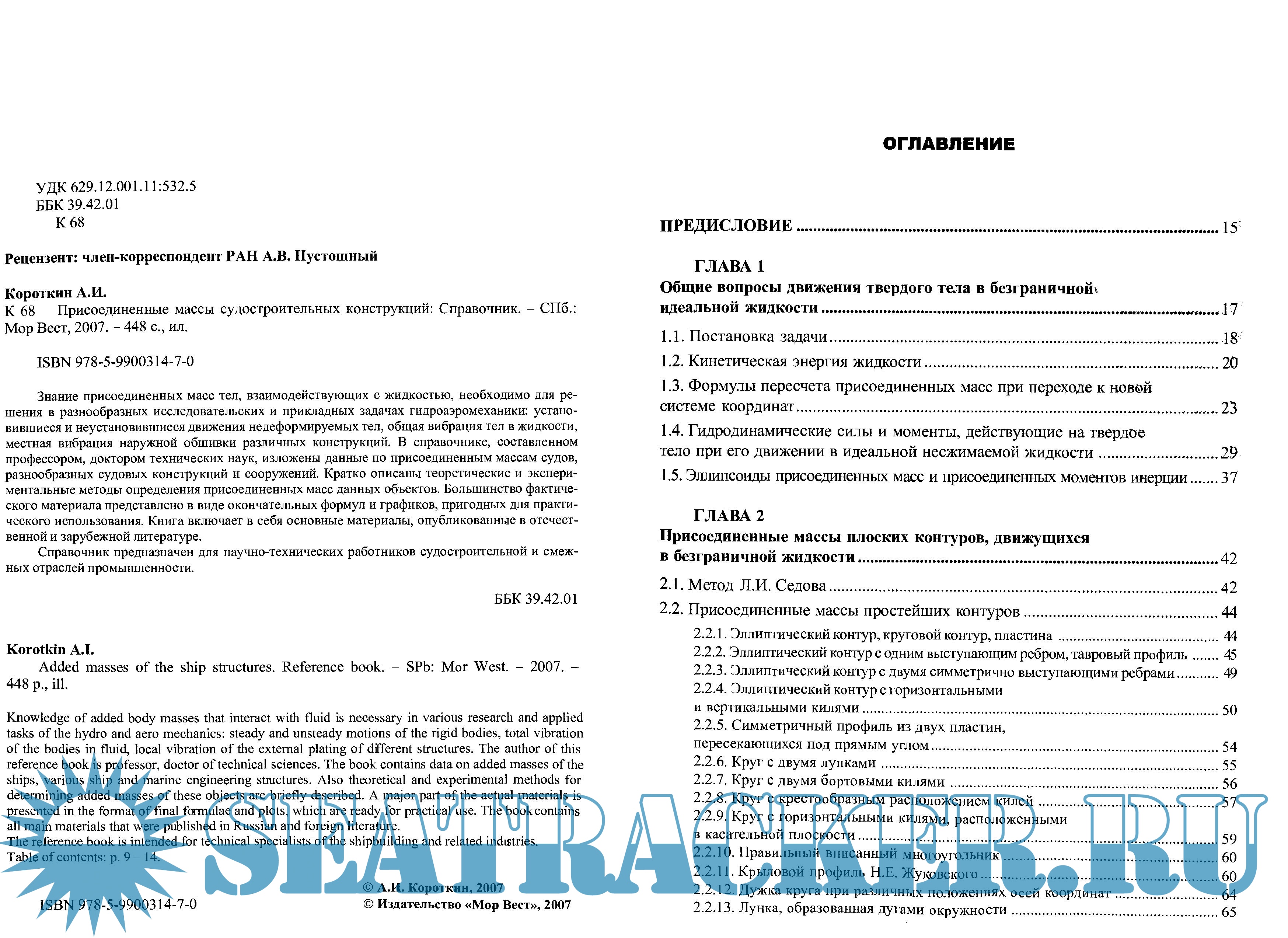 Description: Кратко описаны теоретические и экспериментальные методы определения присоединенных масс судовых конструкций и сооружений. Справочник предназначен для специалистов кораблестроения и смежных отраслей промышленности.
