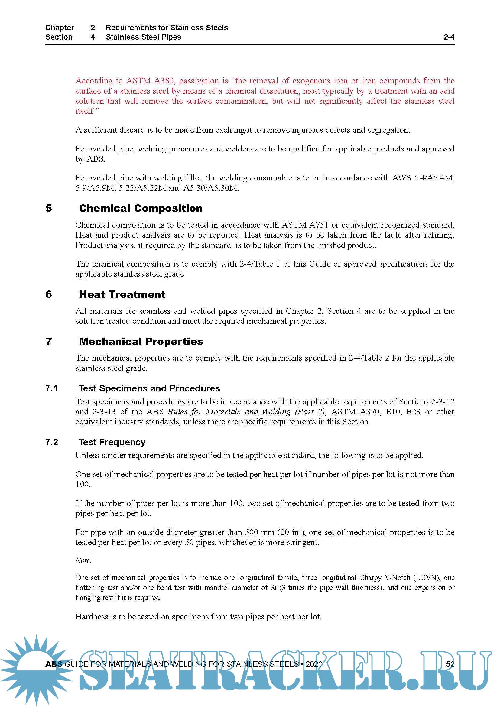 ● Chapter 2 contains the requirements for rolled materials, forgings, castings, pipes and stainless steel