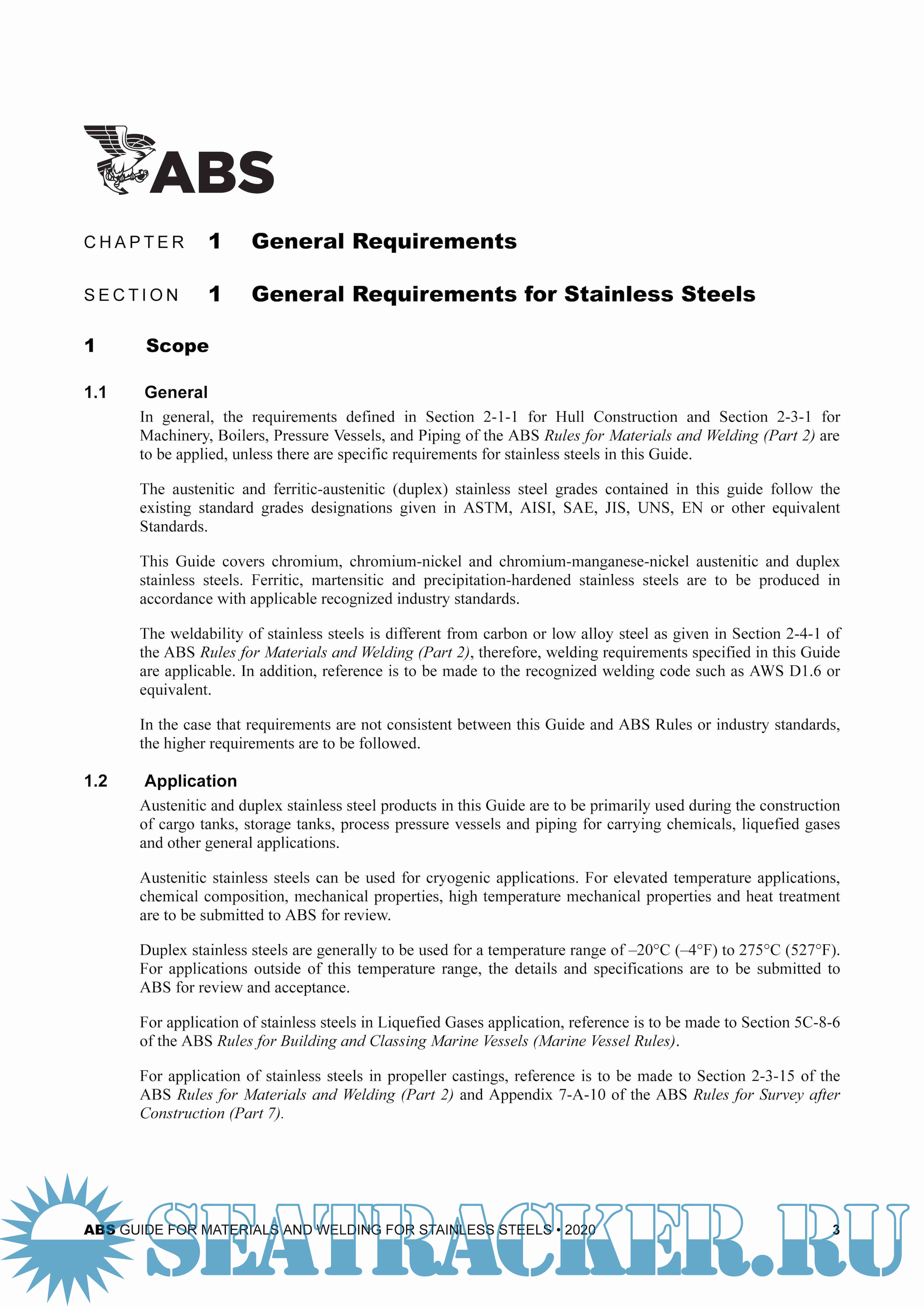 ● Chapter 1 contains general requirements for austenitic and duplex stainless steels.