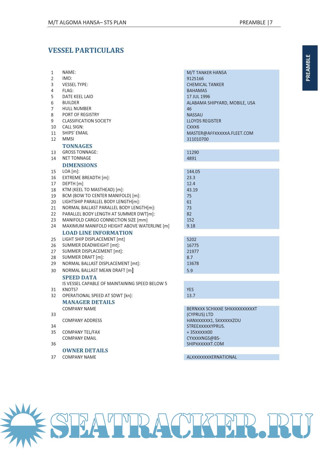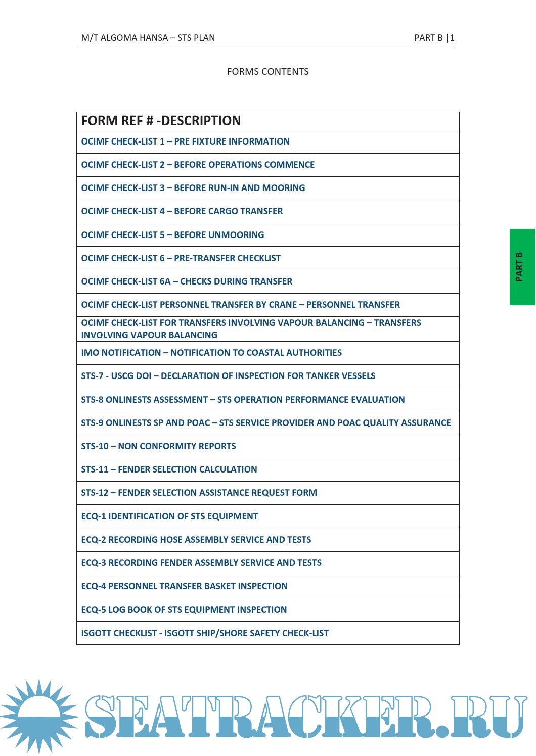 The STS Plan has been developed taking into account the information contained in the best practice guidelines for STS operations as identified by the International Maritime Organization (IMO) as shown in the reference list at page 11 of this PREAMBLE. The STS Plan is incorporated into the existing Safety Management System required by Chapter IX of the International Convention for the Safety of Life at Sea, 1974, as amended. M/T ALGOMA HANSA engaged in STS operations shall comply with this STS Plan.