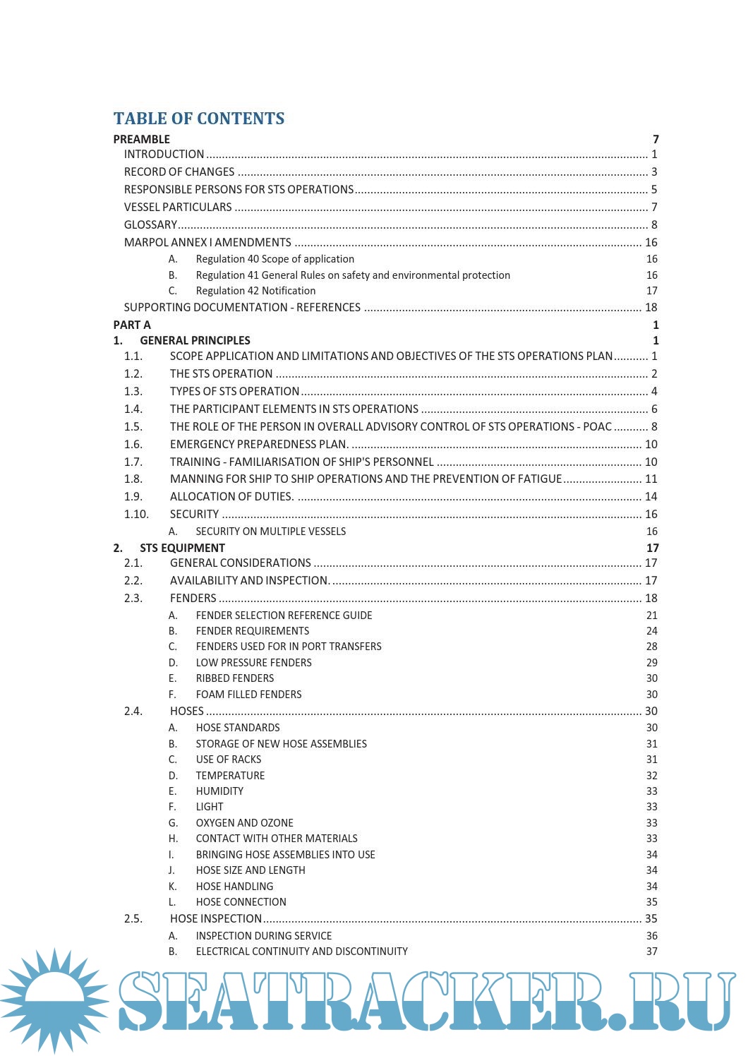 The STS Transfer Operations Plan (STS Plan) has been developed in accordance with the standards describe in MARPOL Annex I, as amended by Resolution MEPC.186(59), Chapter 8: Prevention of Pollution during Transfer of Oil Cargo between Oil Tankers at Sea, Regulations 40, 41, 42.