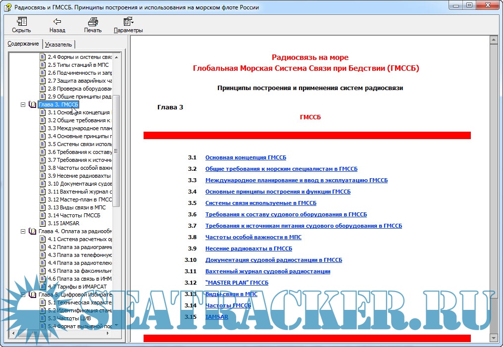 Глава 1 Существующая система радиосвязи на морском флоте. Глава 2 Общее понятие радиосвязи Глава 3 ГМССБ Глава 4 Оплата за радиообмен Глава 5 Цифровой избирательный вызов Глава 6 Системы УБПЧ и TOR Глава 7 Система INMARSAT Глава 8 Методические рекомендации по использованию СЗС INMARSAT Глава 9 Руководство по эксплуатации судовых радиостанций Глава 10 Процедуры использования ЦИВ в ГМССБ (схемы) Глава 11 Средства аварийной связи в ГМССБ Список сокращений