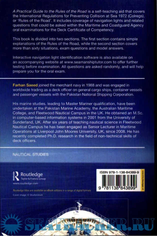 Year: 2015 Language: english Author: Navigator Genre: Practical guide Edition: 3rd Format: PDF Quality: OCR without errors Pages count: 196 Description: A self-teaching aid that covers International regulations for preventing collision at sea 1972 (Colregs) or Rules of the Road, including navigation lights and related situations that could be asked within the Maritime and Coastguard Agency oral examinations for the deck certificate of competency.This book is divided into two sections. The first section contains simple explanations of the Rules of the Road, while the second section covers more than sixty situations, exam questions and model answers.Interactive navigation light identification software is also available on a companion website to offer further testing before examination. All questions are asked randomly, and will help prepare you for the oral exam.Self-teaching guide to the International regulations for preventing collision at sea 1972 (Colregs) / Maritime Coastguard Agency (MCA) Rules of the Road oral examinationsScenarios, questions and model answers help you prepare for the oral exam.