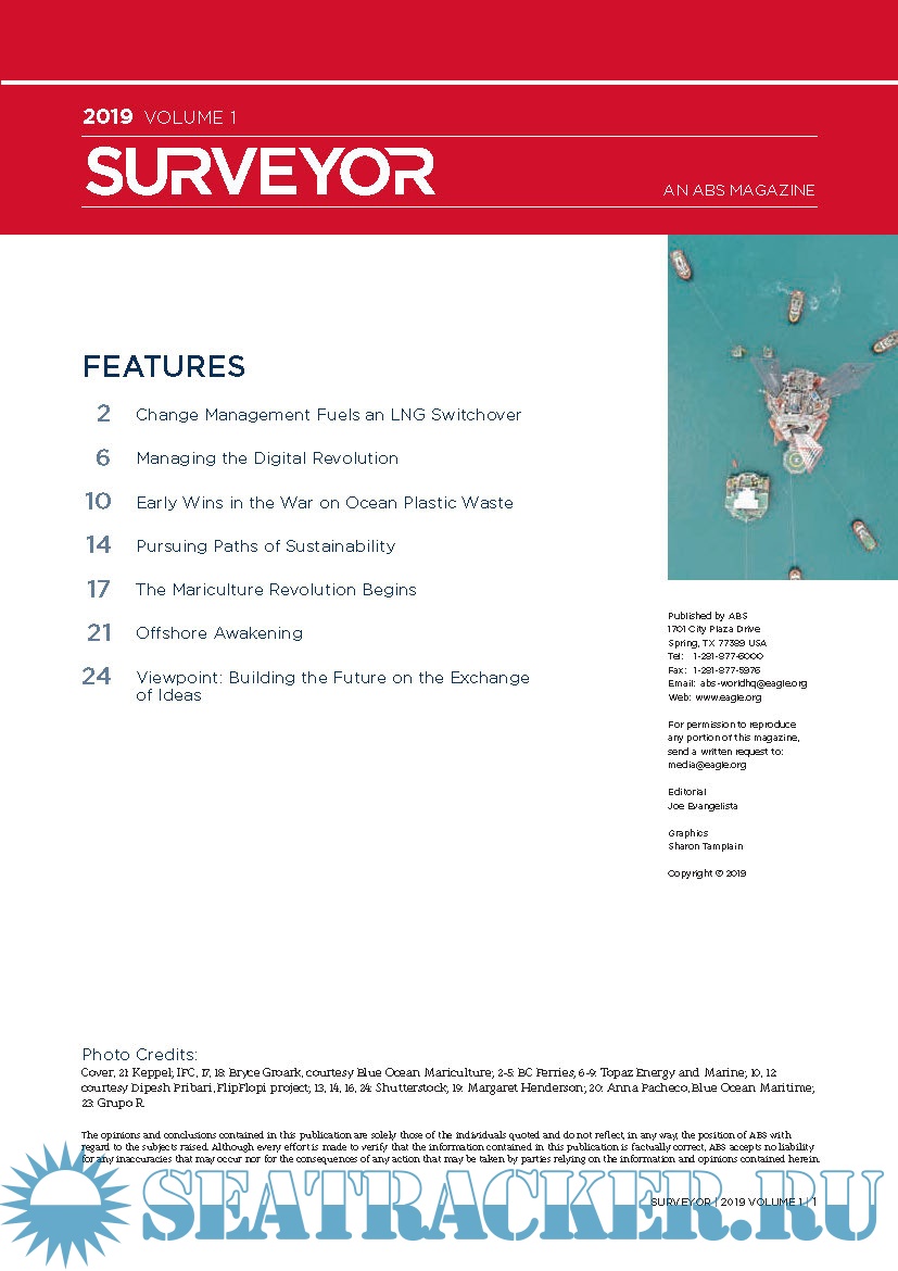 Vol 2 . Feature stories: The Mariculture Revolution Begins, Change Management Fuels an LNG Switchover, Early Wins in the War on Ocean Plastic Waste, Managing the Digital Revolution