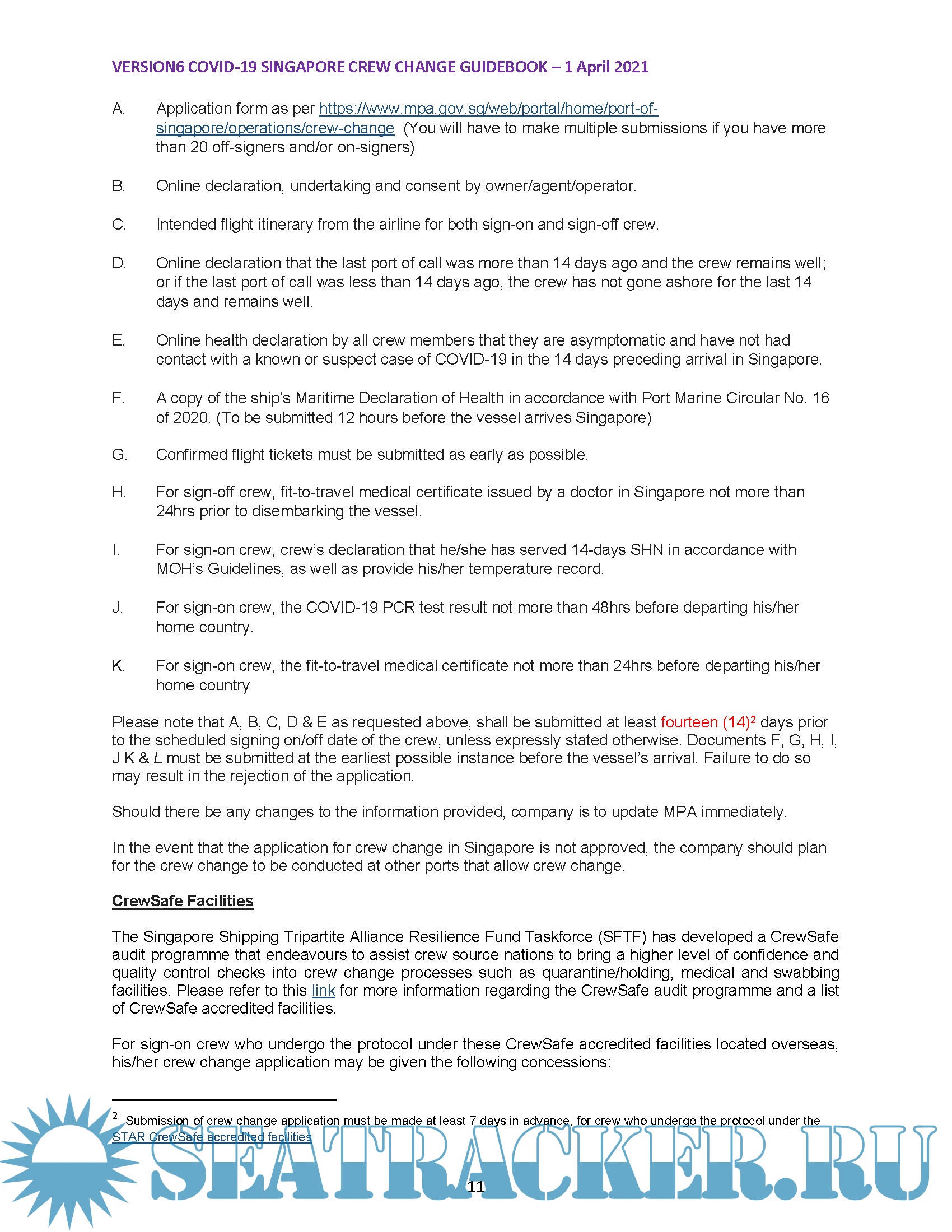 Description: VERSION 6 COVID-19 SINGAPORE CREW CHANGE GUIDEBOOK – DATED 1 April 2021