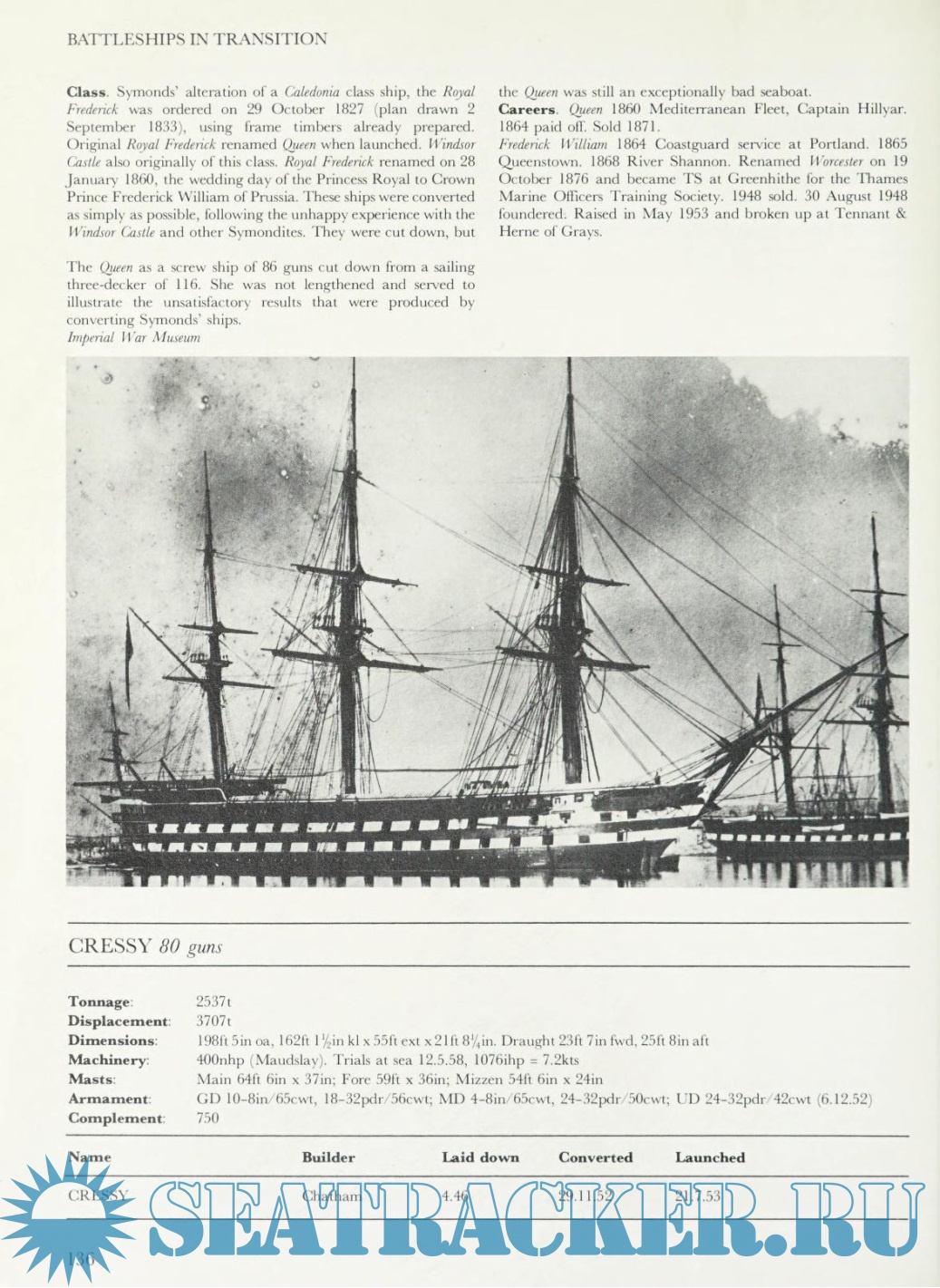 Year: 1984 Language: english Author: Lambert А. Genre: History Publisher: Naval Institute Press ISBN: 0870210904 Format: PDF Quality: Scanned pages Pages count: 168 Description: Explores the period between 1815 and 1860 during which,the construction, hull design, armament and propulsion of the battlefleet changed beyond recognition. Of these factors, the introduction of steampower, driving a screw propeller, and the shell-firing gun had the most significant impact, so that the steam line-of-battleship came ot be recognized as a radical new system more than a decade before the advent of the ironclad; profusely illustrated with b & w photos; line drawings, and maps.