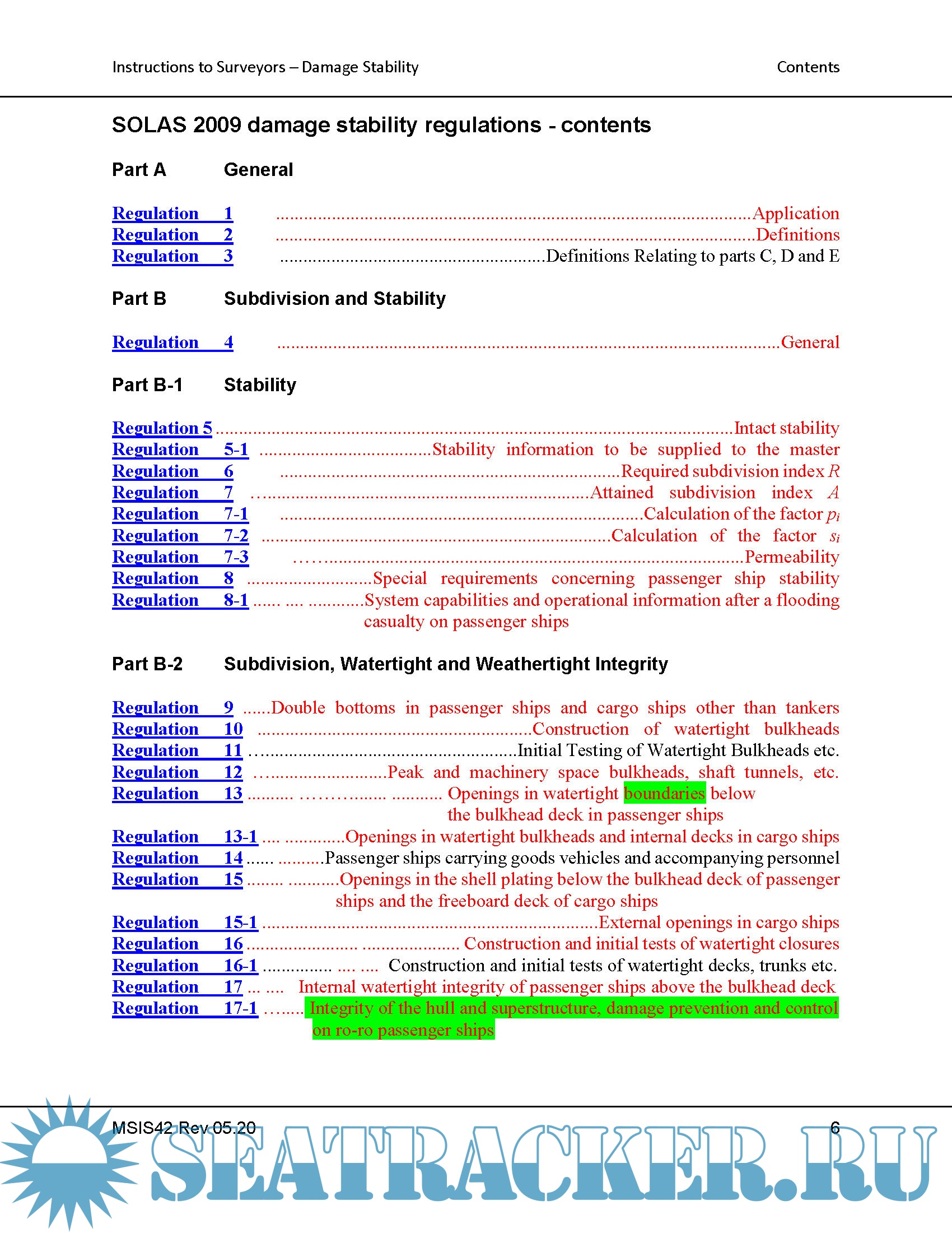 The basis text in this document is extracted from the SOLAS Consolidated Edition 2014 which incorporates all SOLAS amendments in effect from I July 2014 most notably, from the damage stability aspect, the December 2006 Annex 2 amendments, adopted by IMO resolution MSC.216(82), which entered into force for passenger ships and dry cargo ships with keels laid on or after 1 January 2009.