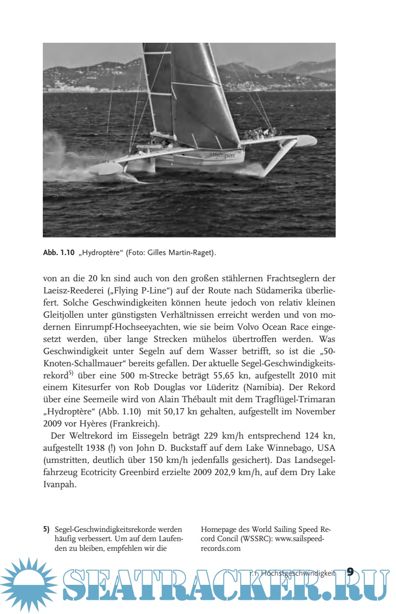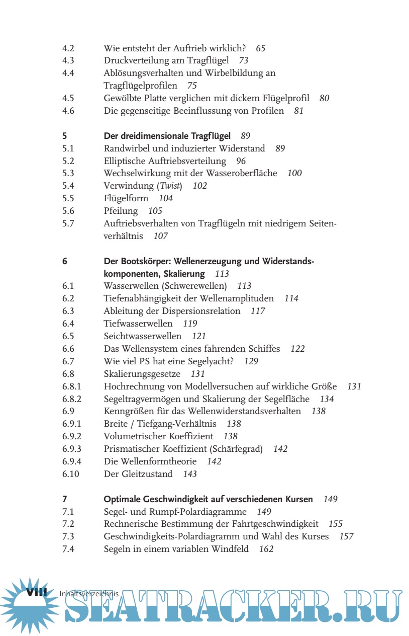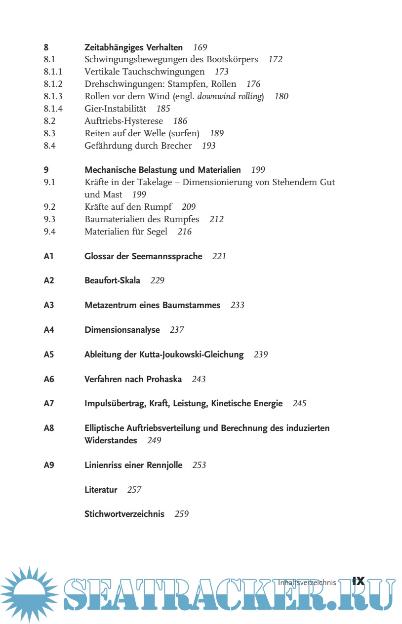 Year: 2012 Language: german Author: Puschl W. Genre: Technical book Publisher: Wiley-VCH Verlag GmbH ISBN: 978-3-527-64850-4 Format: PDF Quality: eBook Pages count: 270 Description: Eine Einführung in die physikalischen Grundlagen des Segelsports für die an Naturwissenschaften interessierten Segler, die schon immer wissen wollten, wie Segeln tatsächlich funktioniert. »Physik des Segelns« führt zunächst in die einfachen Grundsätze und Bedingungen des Segelns ein, wie beispielsweise das Kräftegleichgewicht während der Fahrt. Anschließend wird aus den Eigenschaften von Luft und Wasser und den dynamischen Grundgleichungen das Entstehen dieser Kräfte dargelegt. Das Buch räumt mit verbreiteten falschen Vorstellungen auf und schreitet systematisch von der Betrachtung zweidimensionaler Phänomene zu dreidimensionalen Phänomenen voran. Von Erscheinungen innerhalb der Medien Luft und Wasser geht es weiter zu den Erscheinungen an ihrer Grenzfl äche, den Schwerewellen des Wassers und dem damit verbundenen Widerstand. Mit der Kenntnis aller Beiträge zur Vortriebsleistung wird erläutert, wie sie aufeinander abgestimmt werden müssen, um ein optimales Segeltempo zu erreichen. Abschließend werden zeitlich veränderliche Phänomene wie Manöver und das Arbeiten des Bootes im Seegang betrachtet, und die Materialfestigkeit von Takelage und Rumpf diskutiert. Additional info: Wolfgang Püschl promovierte und habilitierte sich an der Universität Wien, wo er seit 2001 als außer ordentlicher Professor für Material physik tätig ist. Seine Forschungs interessen umfassen Defektstruktur und Atomkinetik in Fest - körpern. In der Lehre vermittelt er seit drei Jahr zehnten praktische und theoretische Themen an Studenten aller Semester. Seine besondere Liebe gehört dem Segelsport, den er seit 48 Jahren, auch mit zahlreichen Regatta-Erfolgen betreibt.