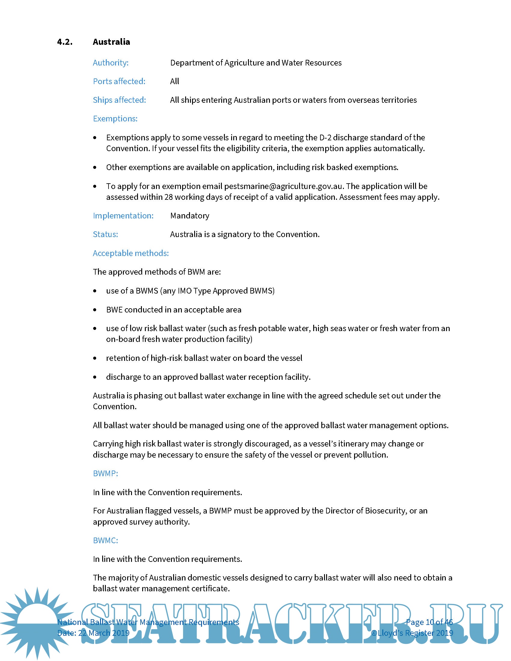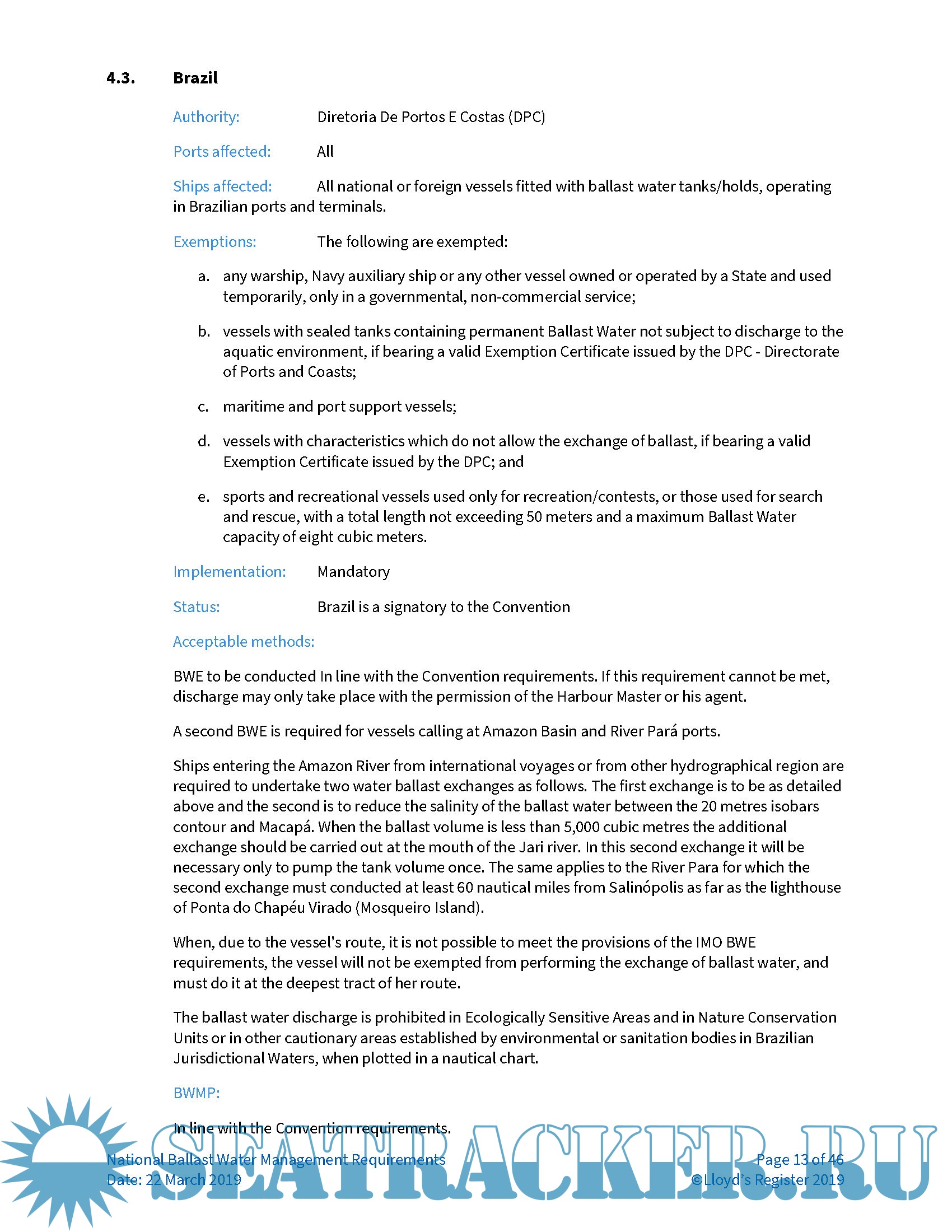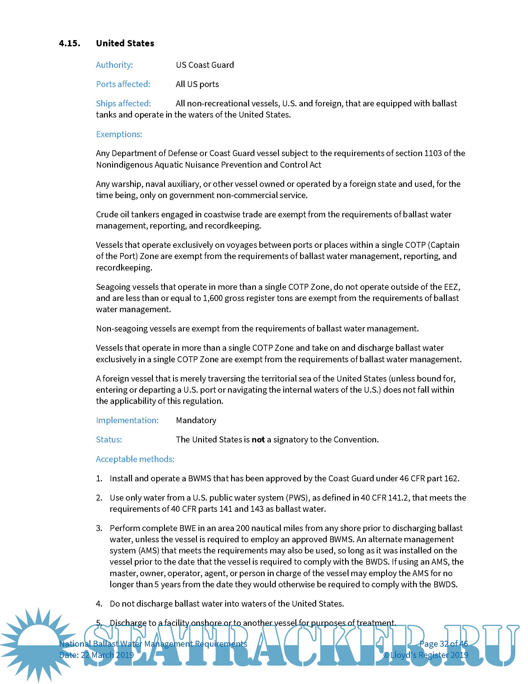 National ballast water management requirements - LRS [2016, PDF]