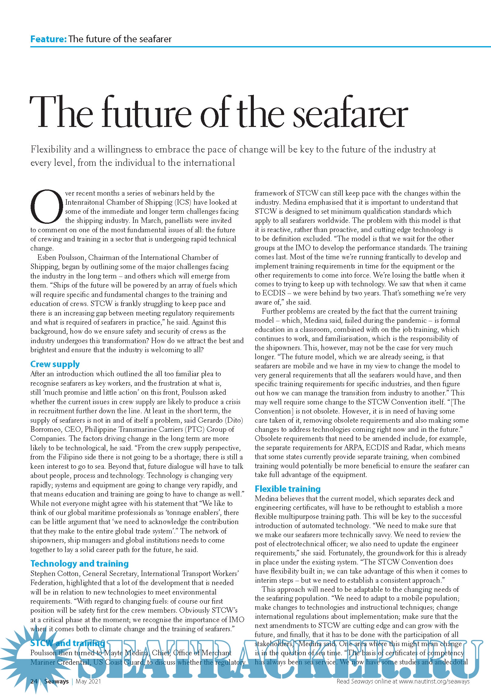 Seaways Recognised as one of the leading maritime journals, Seaways is sent out to all members monthly. It is the international journal of The Nautical Institute and has the most vibrant professional correspondence section to be found anywhere in the industry.