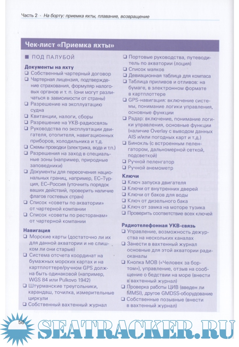 Год выпуска: 2015 Язык: русский Автор: Людвиг Бракман Жанр: Практическое пособие Издательство: АЯКС-ПРЕСС ISBN: 978-5-94161-720-3 Формат: PDF Качество: Отсканированные страницы Количество страниц: 120 Описание: Взять лодку в чартер - это не экзотика. это даже не приключение, это сегодняшний день для десятков тысяч россиян. Правда, многим из них пришлось «изобретать велосипед», решая один вопрос за другим: как принять лодку и как сдать её, как поступить со страховкой, как организовать судовую жизнь во всем ее многообразии - от распределения вахт и кулинарного меню, наконец, как справиться с незнакомой навигационной обстановкой, и какие документы нужно иметь, чтобы заходить туда, куда хочется, и оставаться там сколько пожелаешь... Вопросов масса, а ответы на них еасть в книге Людвига Бракмана "Чартер для всех". Она поможет не только тем, кто еще только подступается к чартеру, но и тем, кто уже не раз брал яхту в аренду. Более того, в книге рассказывается об особенностях чартера в самых популярных местах, таких как Средиземное и Карибское моря, Таиланд. Сейшелы... С этой книгой хороший отпуск под парусом гарантирован. Доп. информация: МАТЕРИАЛ ВЫЛОЖЕН ИСКЛЮЧИТЕЛЬНО В ОЗНАКОМИТЕЛЬНЫХ ЦЕЛЯХ! После ознакомления рекомендуется приобрести бумажный вариант данного пособия на сайте правообладателя либо удалить скачанный файл. НЕ ЗАБЫВАЕМ ГОВОРИТЬ СПАСИБО! Ваши благодарности помогают развиваться данному ресурсу! Также вас, возможно, заинтересует: