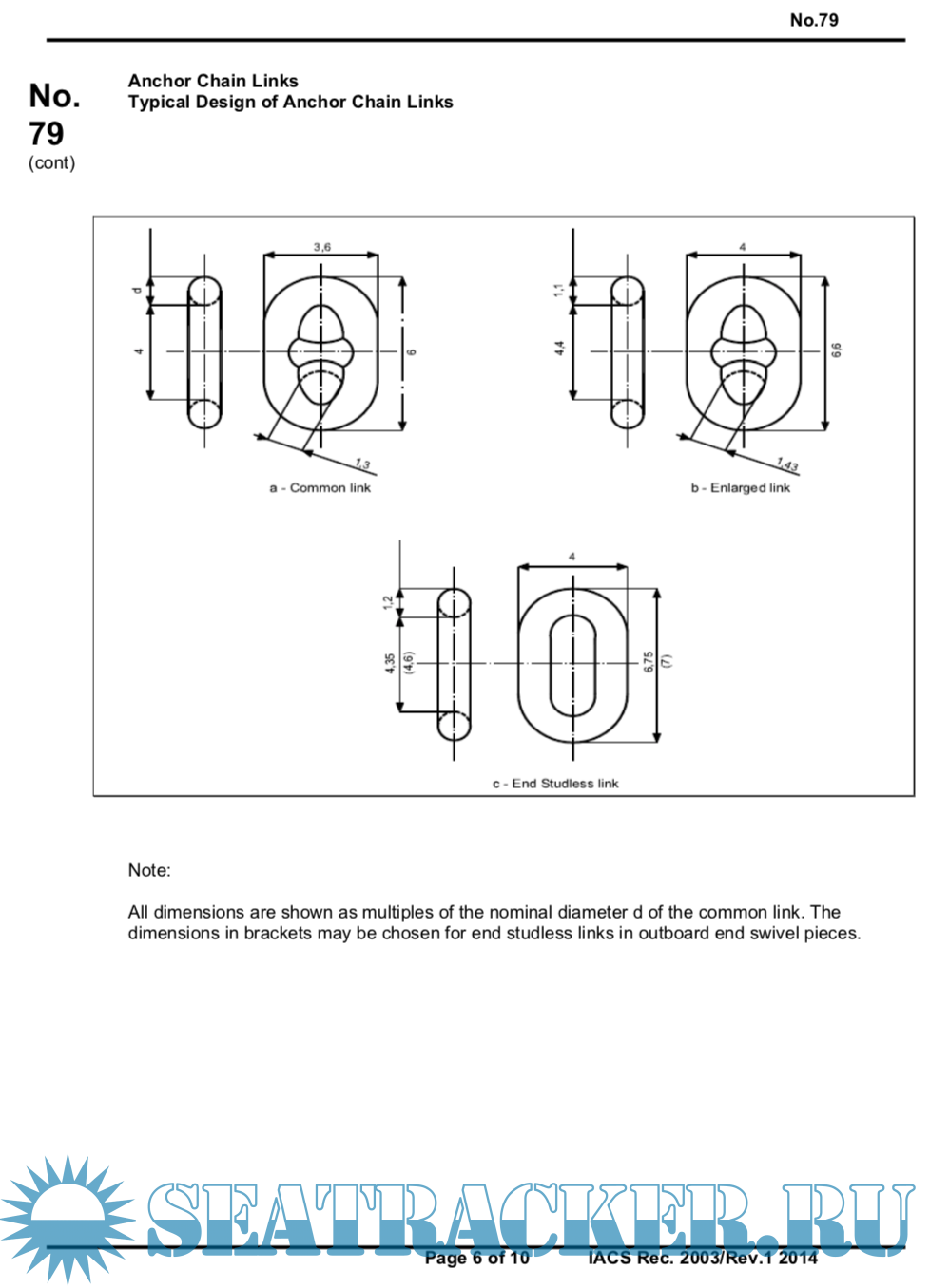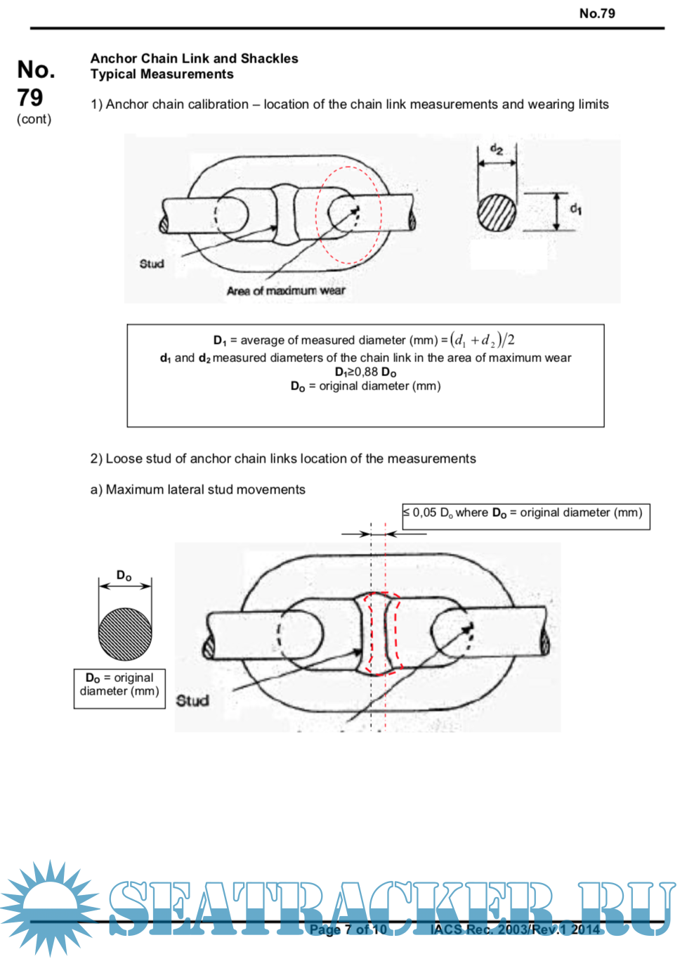 Year: 2014 Language: english Author: IACS Genre: Guide Publisher: IACS Format: PDF Quality: eBook Pages count: 10 Description: This document gives guidelines for maximum wear down of anchor cable fittings, joining shackles, the looseness of studs within anchor cable and the securing by welding of studs found loose during survey of chain cables links in service.