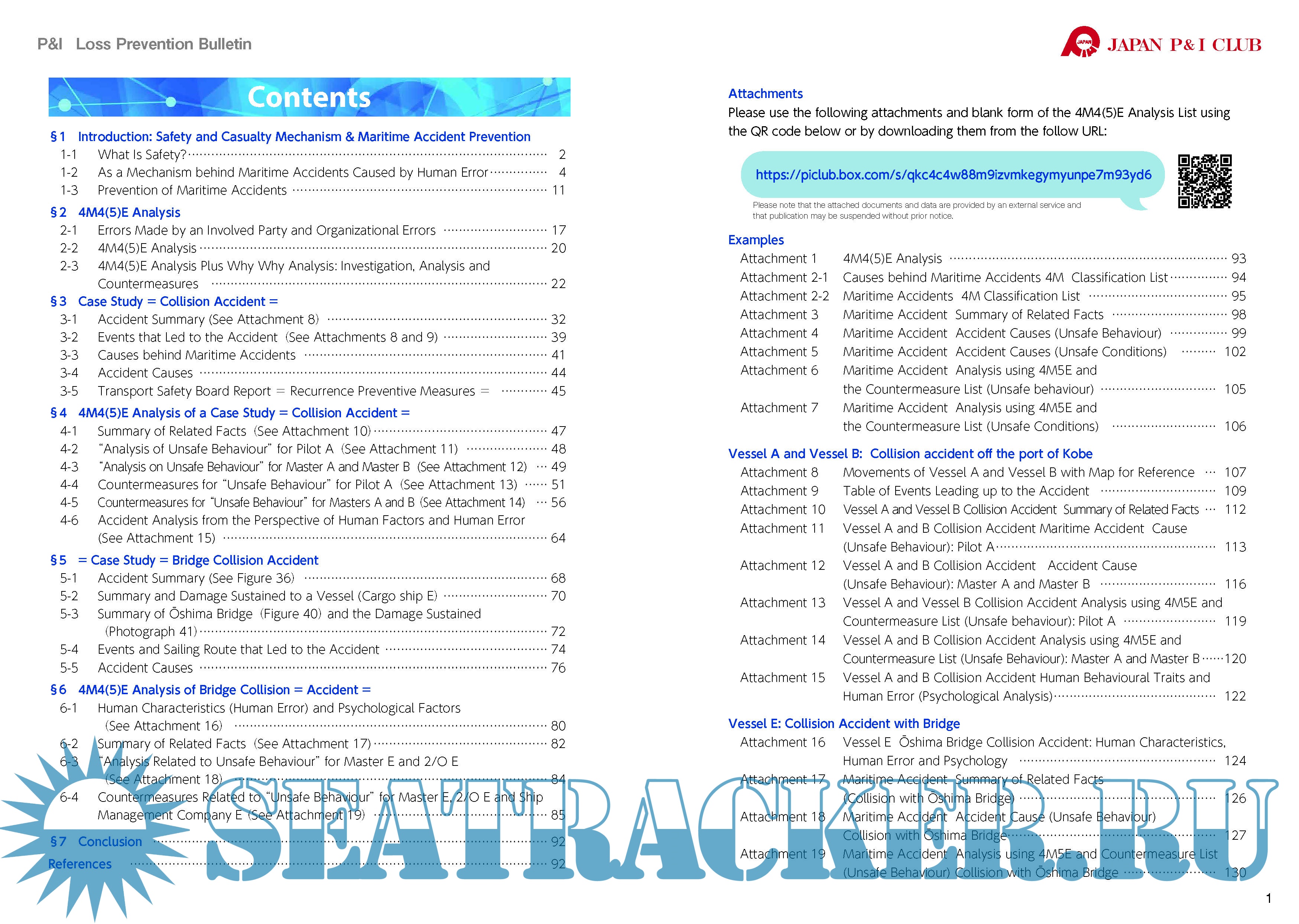 Year: 2021 Language: english Author: Japan P&I Club Format: PDF Quality: eBook Pages count: 132 Description: In this guide "Analysis of Accident Cases" we have included all of the key elements taken from seminars that were held introduced the definition of “safety”, mechanisms behind maritime accidents, how to prevent maritime accidents and so on.
