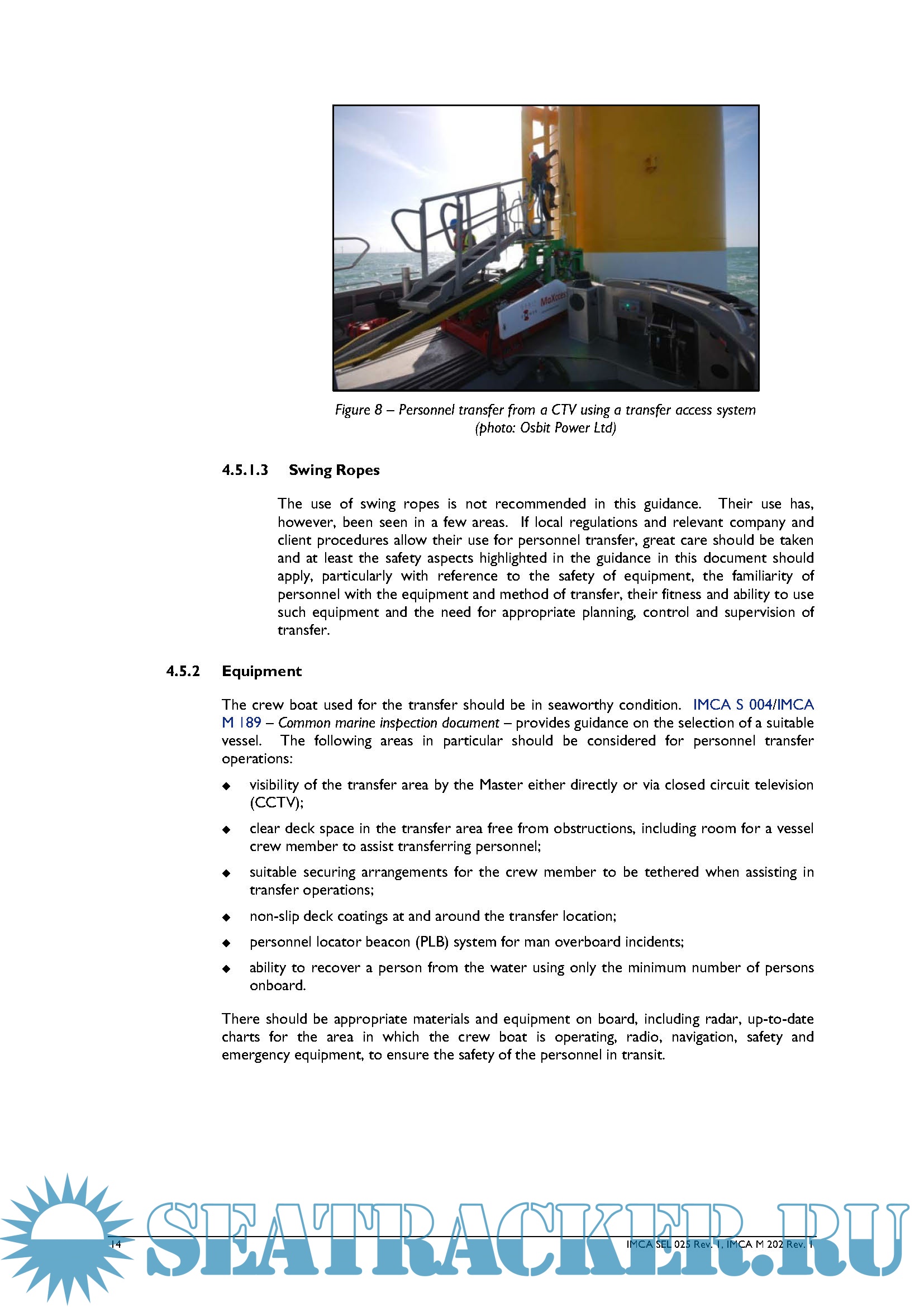 Description: One of the activities specific to offshore operations is the transfer of personnel between vessels and other offshore structures. Such transfers can include movements of personnel at crew change and shift change from vessel to vessel and also between vessels, offshore structures, barges and crew boats as well as to and from the quayside.
