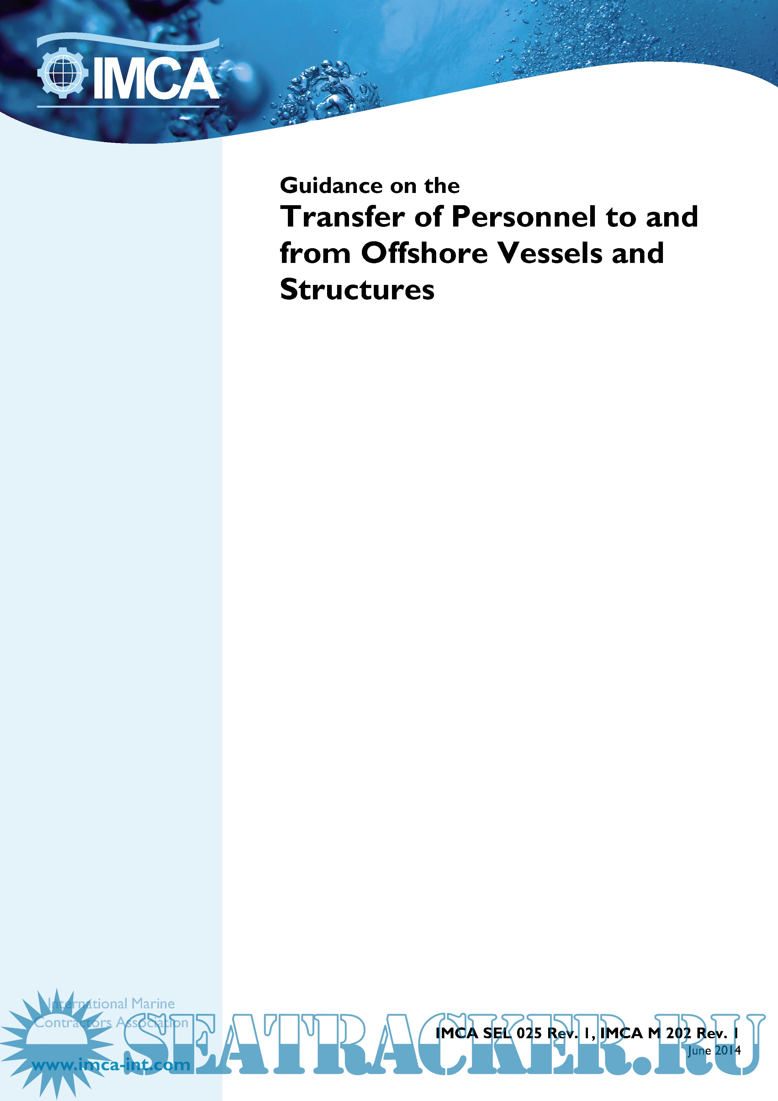 Year: 201X Language: english Author: IMCA Genre: Guide Format: PDF Quality: eBook Pages count: 20 Description: One of the activities specific to offshore operations is the transfer of personnel between vessels and other offshore structures. Such transfers can include movements of personnel at crew change and shift change from vessel to vessel and also between vessels, offshore structures, barges and crew boats as well as to and from the quayside. Within the offshore industry (particularly in the offshore renewable energy industry), there has been an increase in the requirement for the transfer of personnel to offshore vessels and structures, with this trend set to continue. Personnel transfers in the offshore renewable energy industry primarily involve transfer to and from vessels of 10m to 30m in length, operating independently from a mother vessel or from a port. This document is intended to provide guidance for the offshore industry on the safe transfer of personnel at sea. It covers risk assessment, training and competence, responsibility, equipment and communications, and focuses on the main methods of personnel transfer between vessels, offshore structures and the quayside. The primary methods of personnel transfer covered are: ♦ personnel transfer carrier; ♦ gangways, bridge or accommodation ladders, including motion-compensated hydraulic gangways; ♦ small boat or launch; ♦ larger crew boat or support vessel; ♦ mating ‘surfer’ structures allowing personnel to transfer safely. For each case, the document covers the main safety issues and gives some information about the specialist equipment that may be involved, such as ‘surfers’, as well as special duties or responsibilities of personnel involved, particularly with regard to communications. Personnel transfer by helicopter is a separate subject adequately addressed elsewhere and is not covered in this document.
