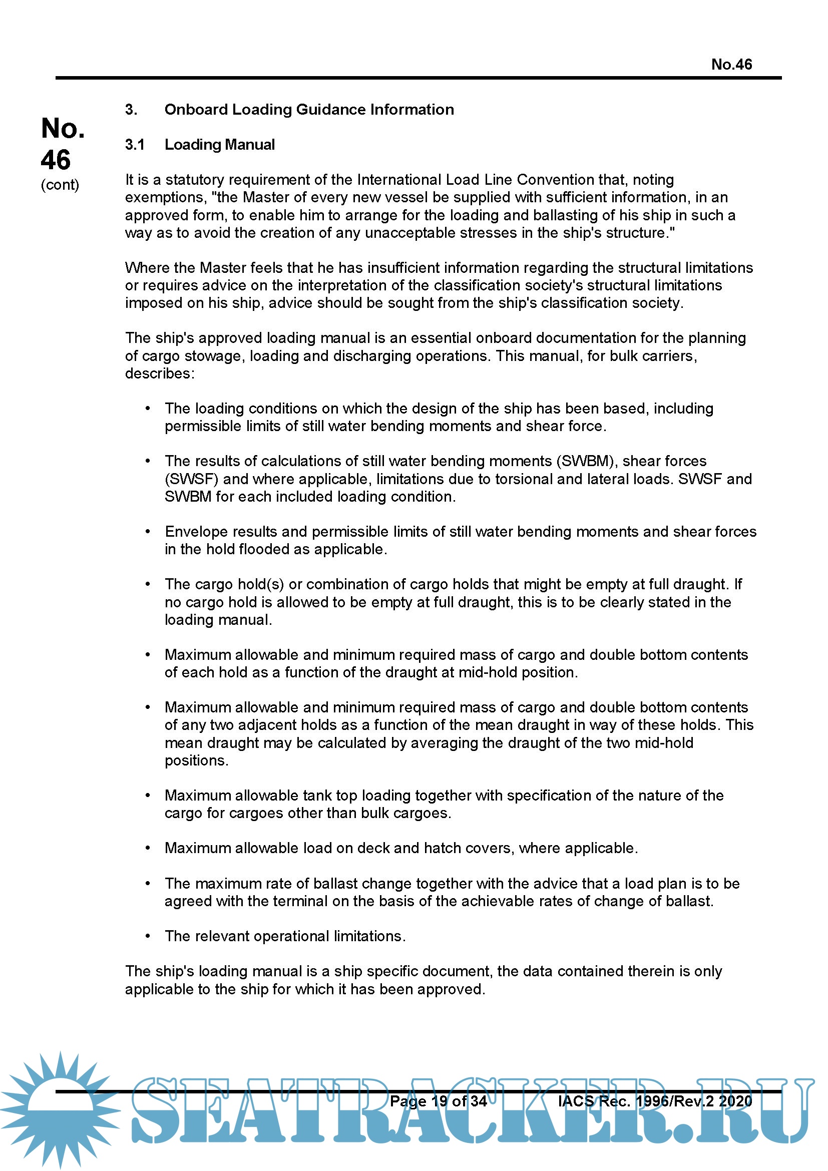on the loading and discharging of bulk carriers to remain within the limitations as specified by