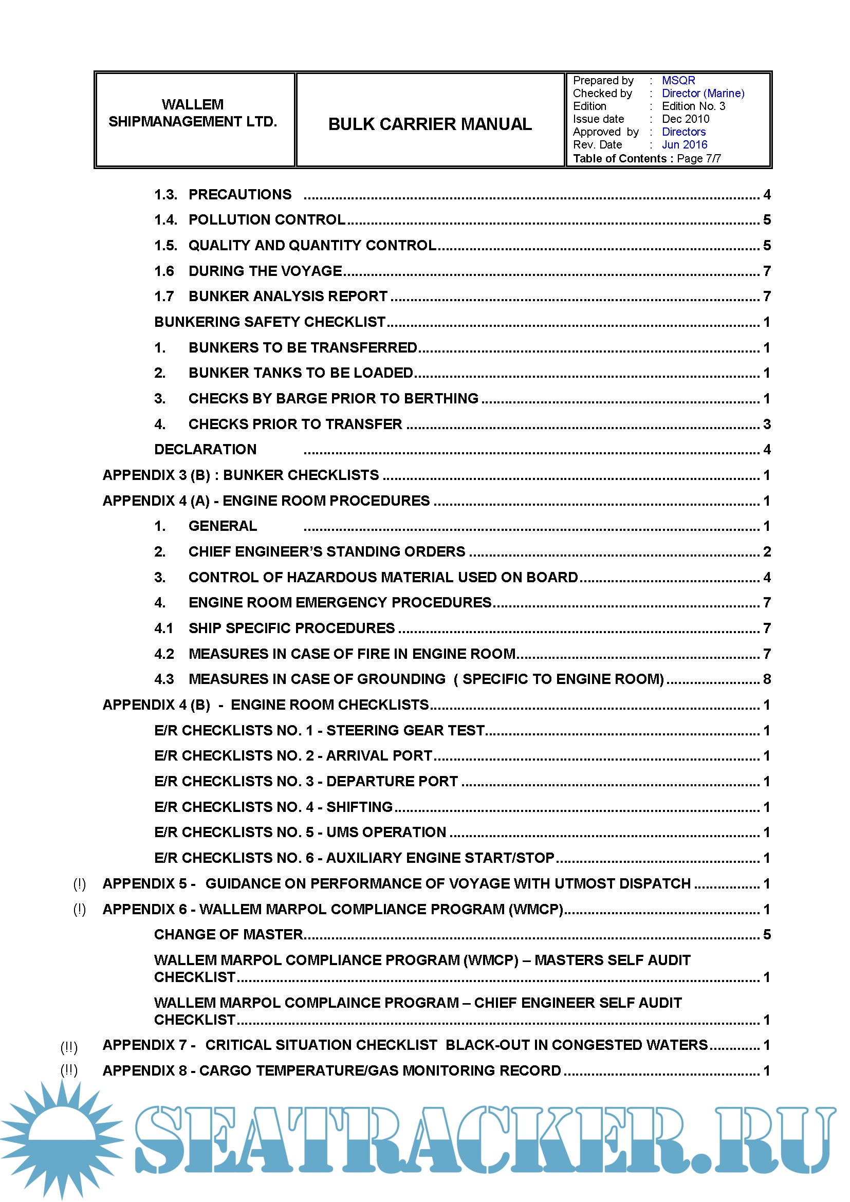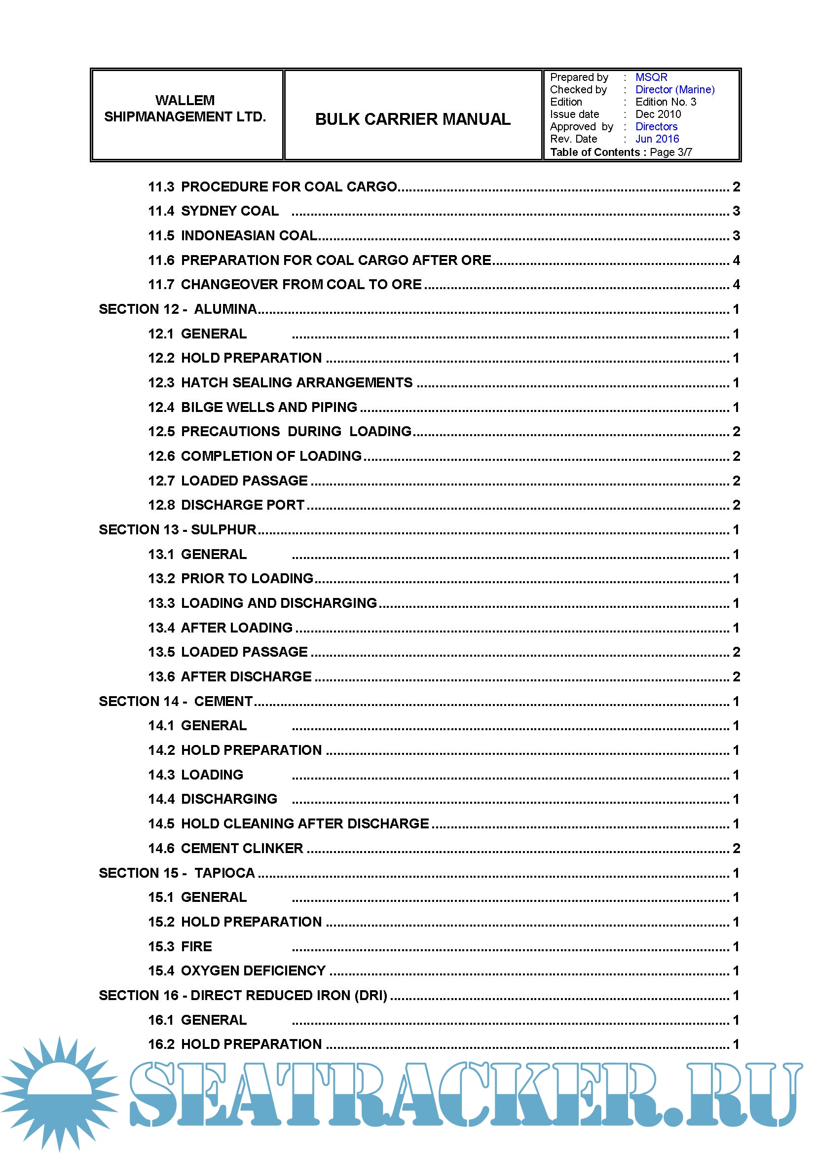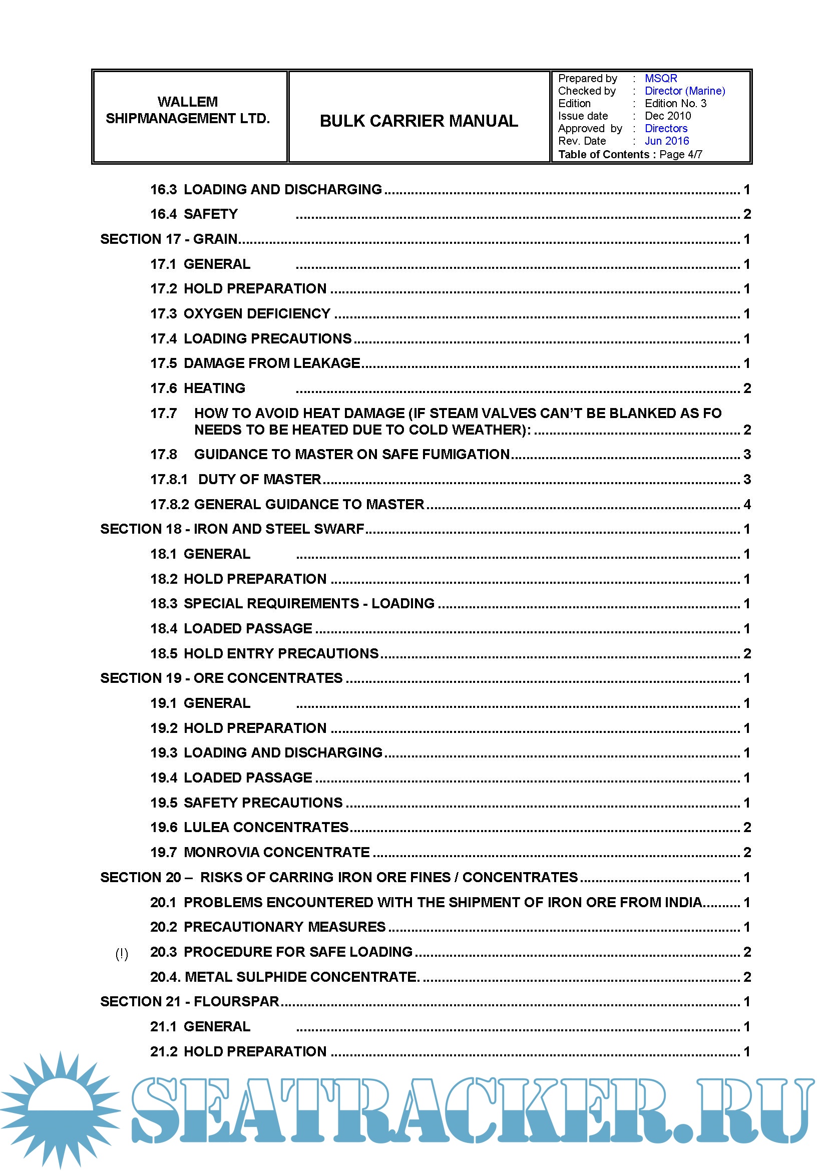 This Manual details the policies and measures adopted by the Company for safe and efficient operation of Bulk Carriers under its management and control.
