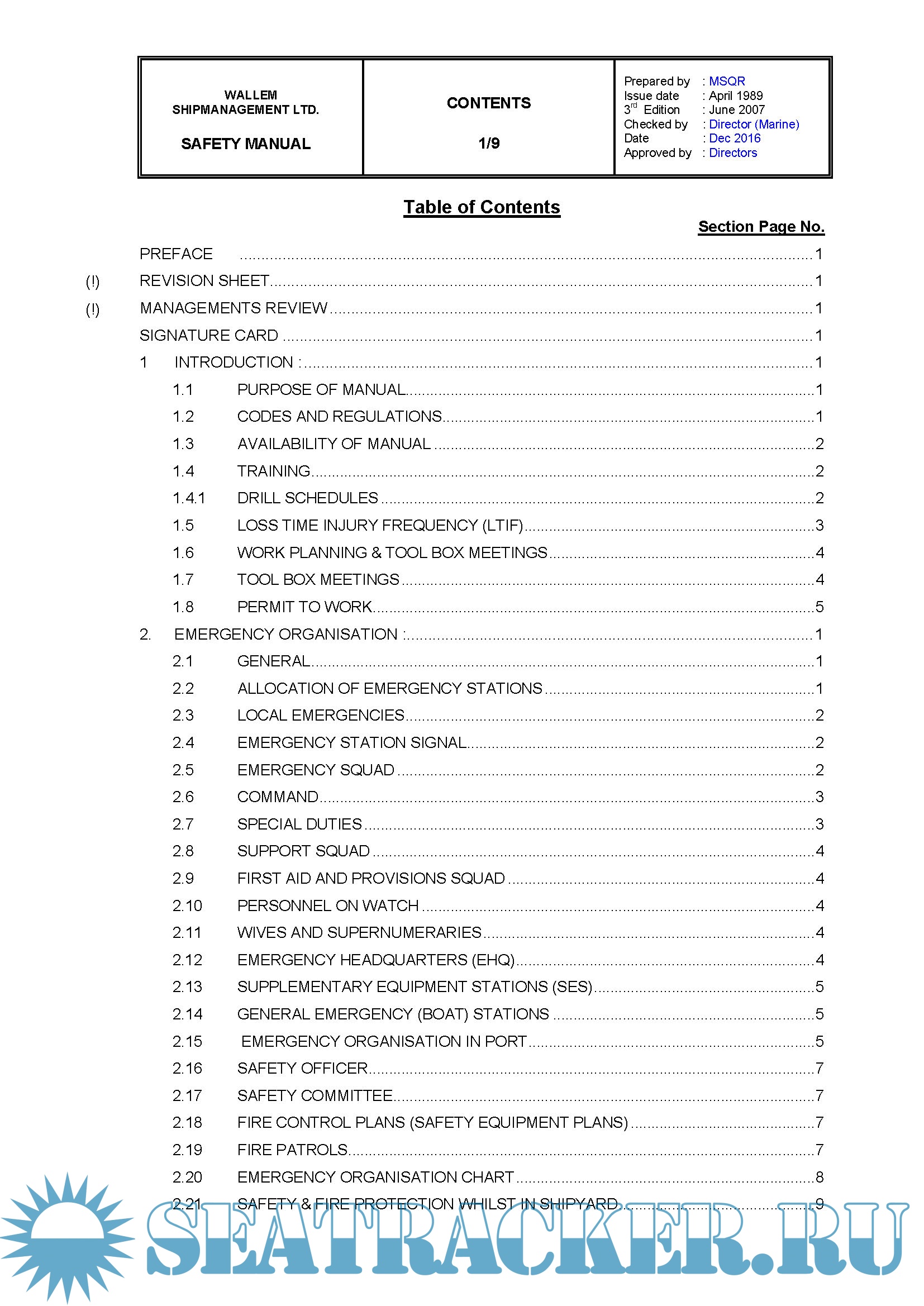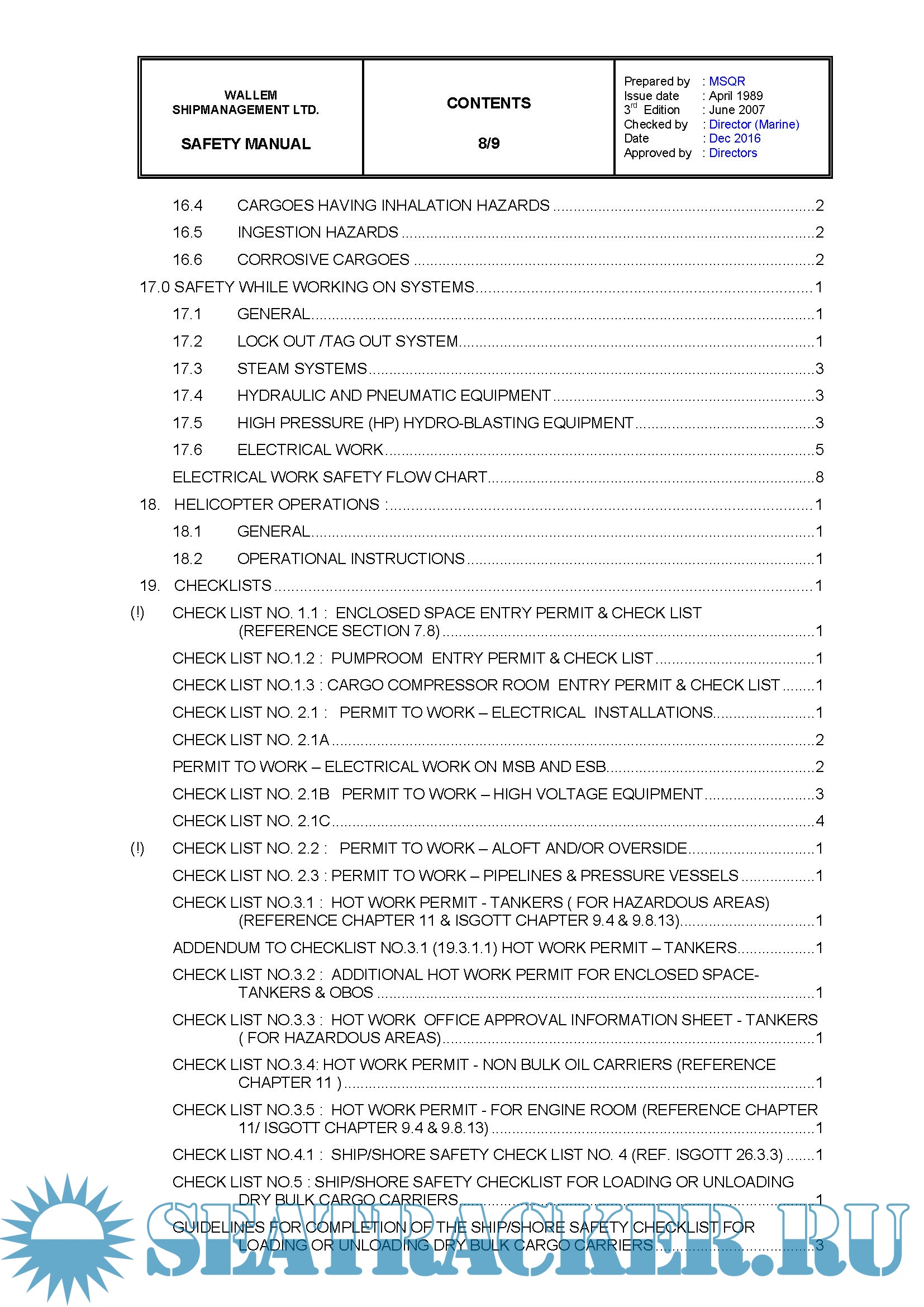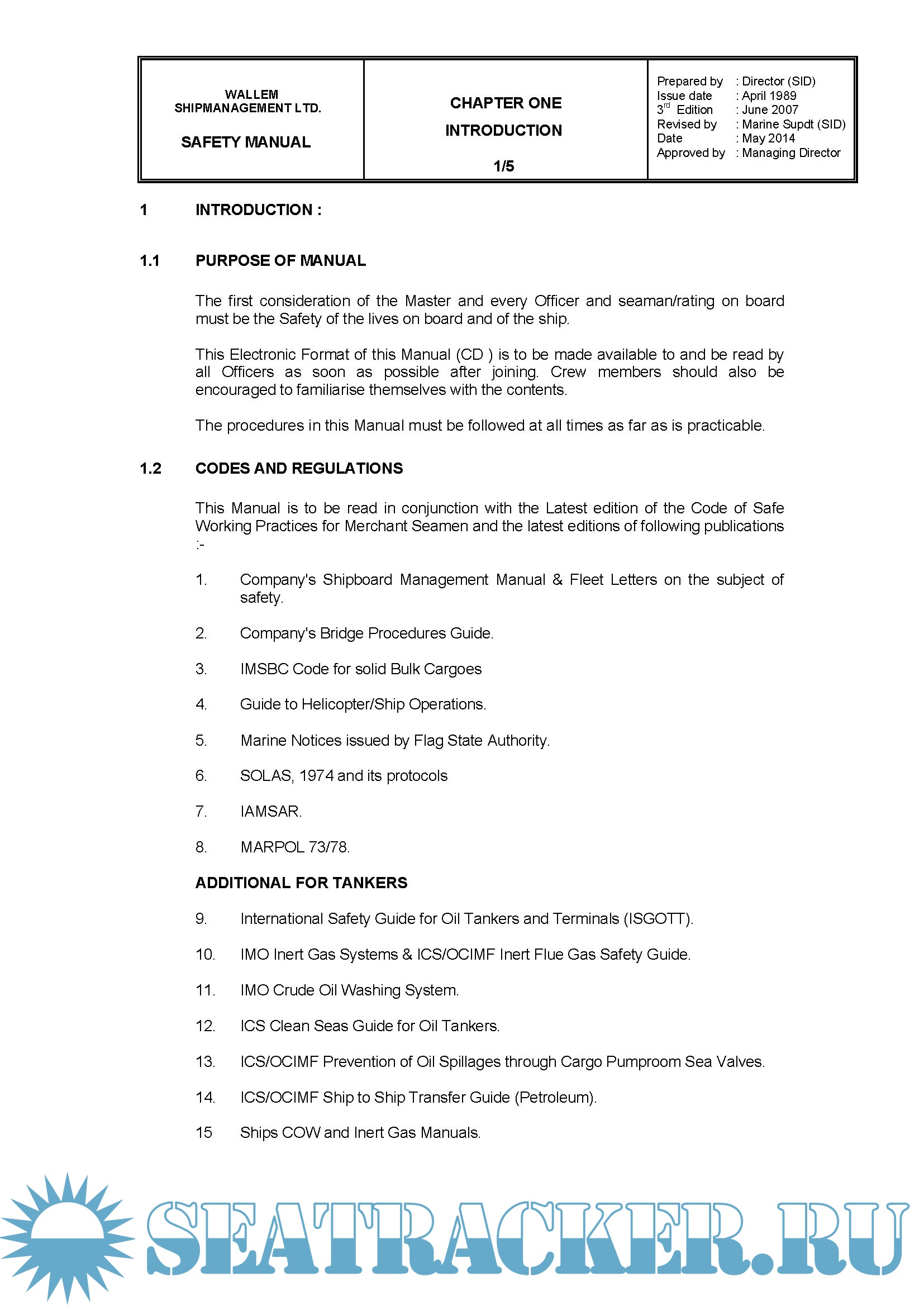 Description: Wallem ShipManagement Ltd Safety Manual Edition 3. Revision dated June 2016