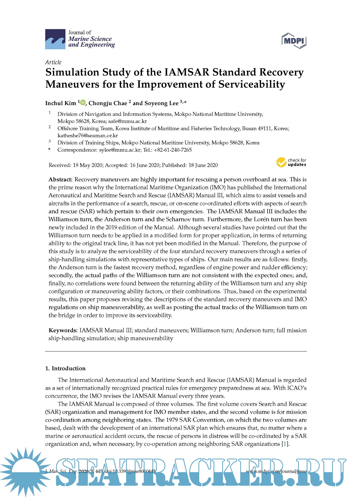 Description: Recovery maneuvers are highly important for rescuing a person overboard at sea. This is the prime reason why the International Maritime Organization (IMO) has published the International Aeronautical and Maritime Search and Rescue (IAMSAR) Manual III, which aims to assist vessels and aircrafts in the performance of a search, rescue, or on-scene co-ordinated efforts with aspects of search and rescue (SAR) which pertain to their own emergencies. The IAMSAR Manual III includes the Williamson turn, the Anderson turn and the Scharnov turn. Furthermore, the Lorén turn has been newly included in the 2019 edition of the Manual.