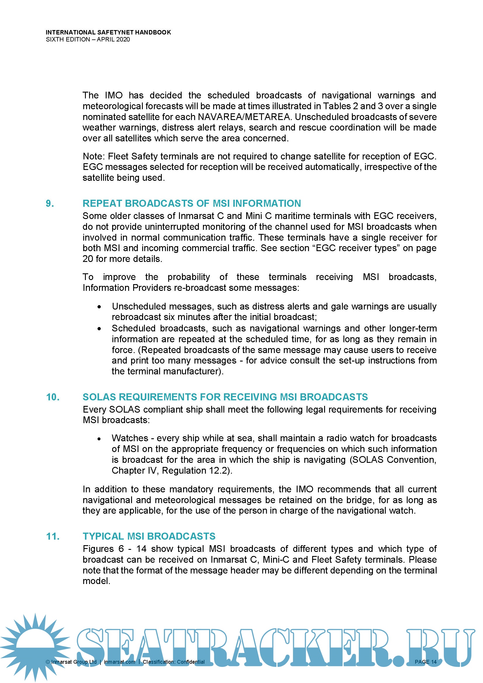 This handbook is intended for mariners, to explain the operation of the International SafetyNET service as an element of the IMO Global Maritime Distress and Safety System (GMDSS). SafetyNET is the service for broadcasting and automatic reception of Maritime Safety Information (MSI) via Enhanced Group Call (EGC) system. Its receiving capability is part of the mandatory equipment to be carried by certain SOLAS compliant ships. EGC is the system for broadcasting messages via the Inmarsat satellite communications system and supports services: SafetyNET and SafetyNET II. This handbook deals mainly with the distribution of Maritime Safety Information (MSI) via satellite using the International SafetyNET services.