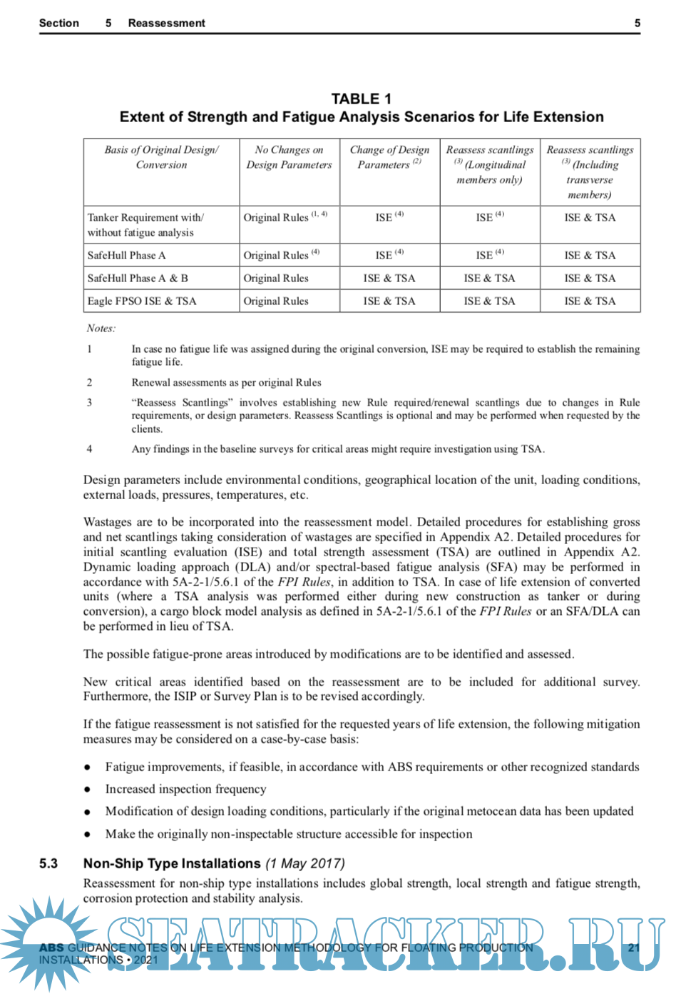 In the May 2021 edition, a new Appendix 3 introduces a methodology for addressing Remaining Fatigue Life for FPSOs based on Loading Historical Data acquired on board during the vessel’s Service Life.