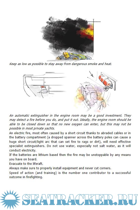 - Safety and emergencies: identifying likely emergencies (grounding, loss of rigging/mast, leaks, loss of steering, man overboard, sinking and taking to the liferaft) with self-help solutions, calling for help, equipment, VHF procedures, fire and gas, fixing an engine, knowing when help should be sought without delay