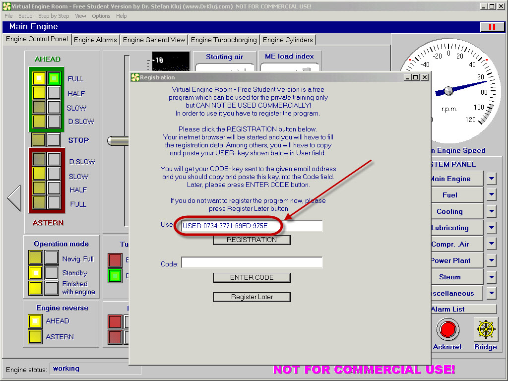 1. Virtual Engine Room - Free Student Version can't be used for the commercial purpose.