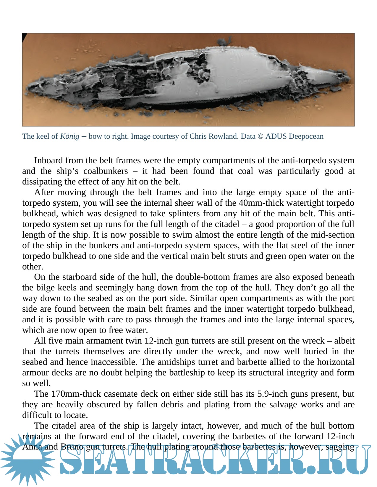 The dark depths of Scapa Flow conceal the remains of several of the Kaiser's WWI High Seas Fleet. Three massive 575 feet long 26,000-ton König-class battleships await exploration – huge underwater mountains where divers can see the last 12-inch big guns to have fired at British warships at the Battle of Jutland in 1916; or drift along rows of 5.9-inch secondary battery casemate guns and see massive masts and heavily armoured spotting tops. Four 5,000-ton, 500 foot long, kleiner kreuzers, Brummer, Cöln, Dresden and Karlsruhe lie on their beam ends open for inspection with parts that remained on the seabed of many other High Seas Fleet vessels as they themselves were lifted to the surface during the greatest feat of underwater salvage that has ever taken place.
