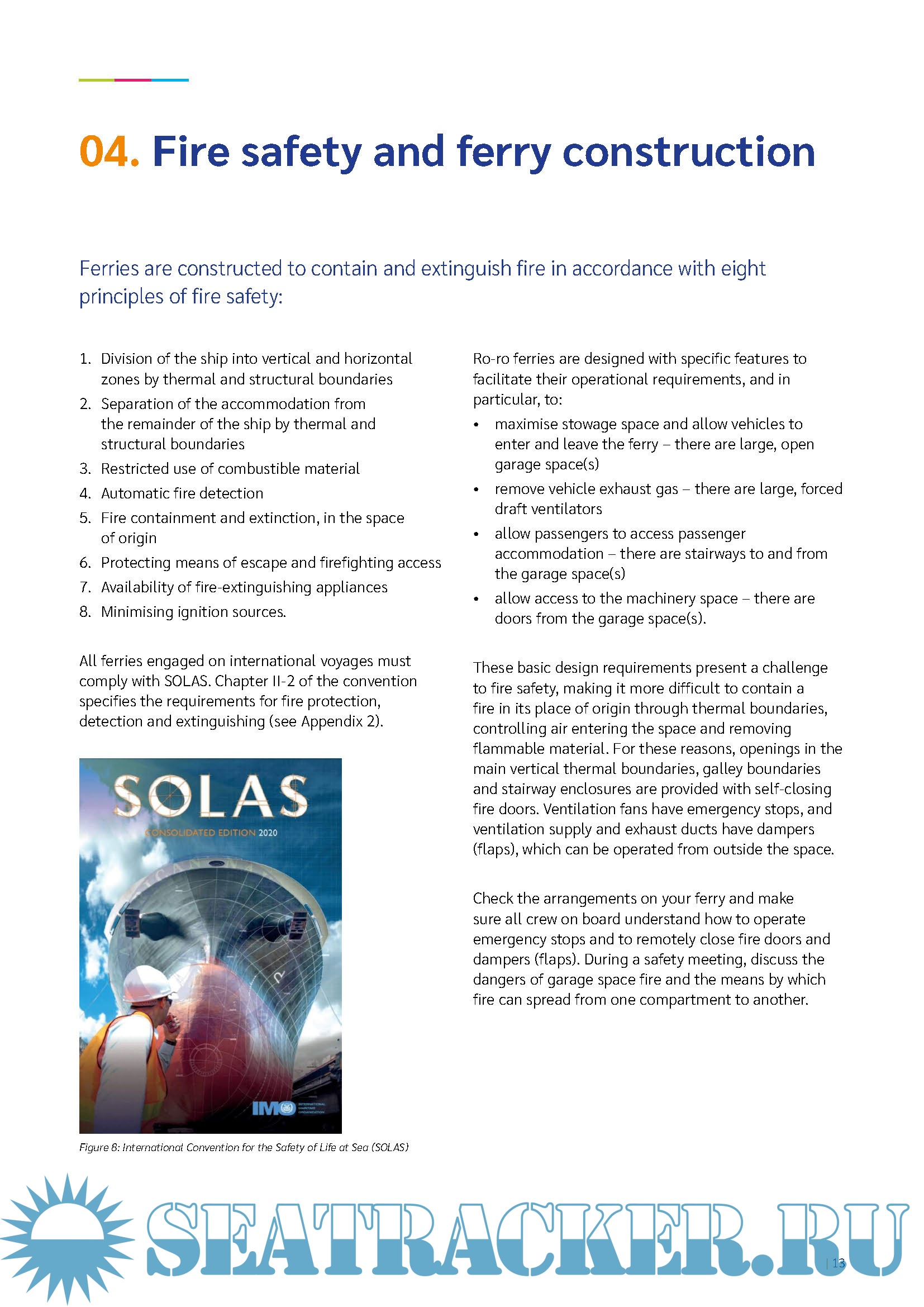The guide to Fire Safety on Ferries is written for mariners, although surveyors, safety
