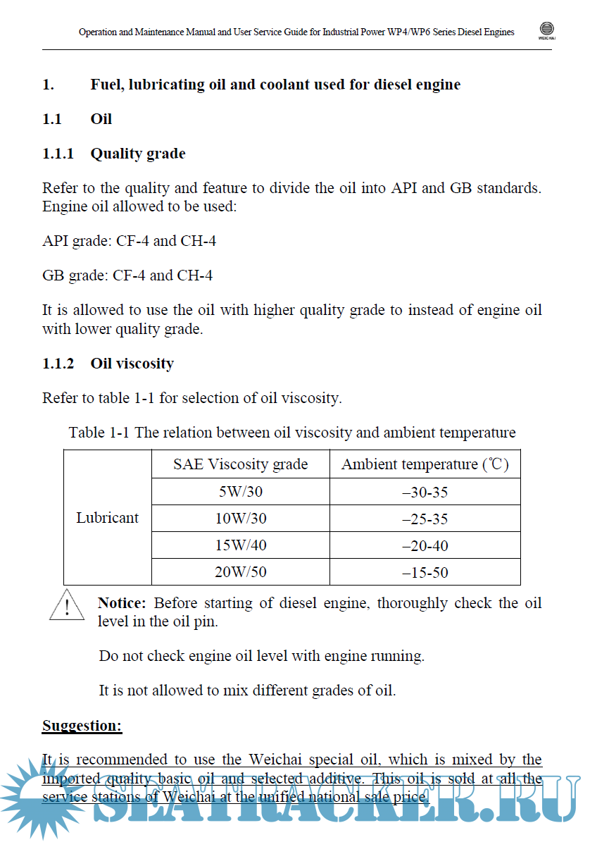 Weichai Manual for WP4/WP6 Series Diesel Engines