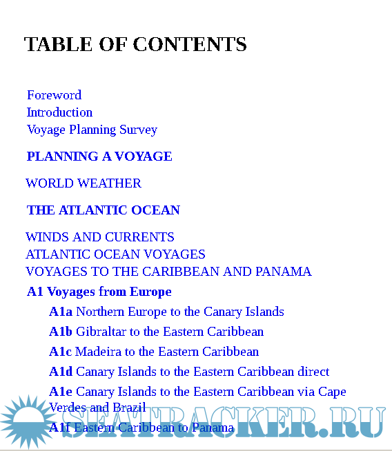 TABLE OF CONTENTS Foreword Introduction Voyage Planning Survey PLANNING A VOYAGE WORLD WEATHER THE ATLANTIC OCEAN WINDS AND CURRENTS ATLANTIC OCEAN VOYAGES VOYAGES TO THE CARIBBEAN AND PANAMA VOYAGES TO THE MEDITERRANEAN VOYAGES TO NORTHERN EUROPE VOYAGES TO NORTH AMERICA VOYAGES TO SOUTH AMERICA AND ANTARCTICA VOYAGES TO SOUTH AFRICA CIRCULAR VOYAGES IN THE ATLANTIC OCEAN CIRCULAR VOYAGES FROM EUROPE CIRCULAR VOYAGES FROM THE US EAST COAST CIRCULAR VOYAGES FROM SOUTH AMERICA AND SOUTH AFRICA ATLANTIC OCEAN RALLIES THE PACIFIC OCEAN WINDS AND CURRENTS PACIFIC OCEAN VOYAGES VOYAGES TO TAHITI VOYAGES TO FIJI VOYAGES TO NEW ZEALAND AND AUSTRALIA VOYAGES TO HAWAII VOYAGES TO PANAMA AND CENTRAL AMERICA VOYAGES TO NORTH AMERICA VOYAGES TO SOUTH AMERICA VOYAGES TO ASIA CIRCULAR VOYAGES IN THE PACIFIC OCEAN PACIFIC OCEAN RALLIES THE INDIAN OCEAN WINDS AND CURRENTS INDIAN OCEAN VOYAGES INDIAN OCEAN RALLIES THE MEDITERRANEAN SEA WINDS AND CURRENTS MEDITERRANEAN VOYAGES MEDITERRANEAN RALLIES ROUND THE WORLD VOYAGES RW1 ROUND THE WORLD VOYAGES FROM EUROPE RW2 ROUND THE WORLD VOYAGES FROM THE EAST COAST OF NORTH AMERICA RW3 ROUND THE WORLD VOYAGES FROM THE WEST COAST OF NORTH AMERICA RW4 ROUND THE WORLD VOYAGES FROM AUSTRALIA AND NEW ZEALAND RW5 ROUND THE WORLD VOYAGES FROM ASIA RW6 ROUND THE WORLD VOYAGES FROM THE EAST COAST OF SOUTH AMERICA RW7 ROUND THE WORLD VOYAGES FROM THE WEST COAST OF SOUTH AMERICA RW8 EASTABOUT ROUND THE WORLD VOYAGES ROUND THE WORLD RALLIES Acknowledgements Photo credits Cruising guides