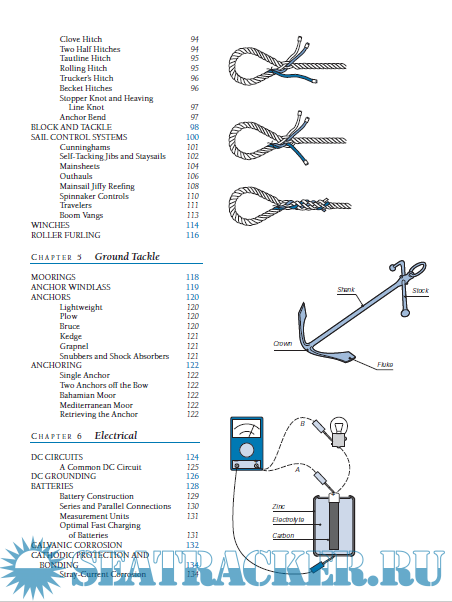 Year: 2007 Language: english Author: Charles Wing Genre: Guide Publisher: International Marine, McGraw-Hill ISBN: 978-0-07-151108-7 Format: PDF Quality: eBook Pages count: 175 Description: Whether you’re a new mariner or a lifetime veteran, How Boat Things Work is a resource you can’t afford to be without. With intricate two-color cutaway drawings of eighty different systems and devices, as well as detailed explanations of how they’re assembled, how they work, and how they can go wrong, this book covers every primary component of your boat's inner workings. This guided tour “under the hood” of your sailboat or powerboat includes: Engines, transmissions, bearings, stuffing boxes, propellers, Steering systems, autopilots, windvanes, compasses, Rigging, splicing, line handling, block and tackle, sail controls, Anchors and windlasses DC and AC electrical systems, Pumps, toilets, seacocks, freshwater systems