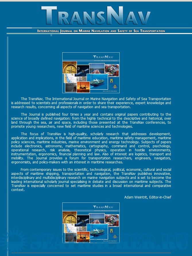 From contemporary issues to the scientific, technological, political, economic, cultural and social aspects of maritime shipping, transportation and navigation, the TransNav publishes innovative, interdisciplinary and multidisciplinary research on marine navigation subjects and is set to become the leading international scholarly journal specialising in debate and discussion on maritime subjects. The TransNav is especially concerned to set maritime studies in a broad international and comparative context.