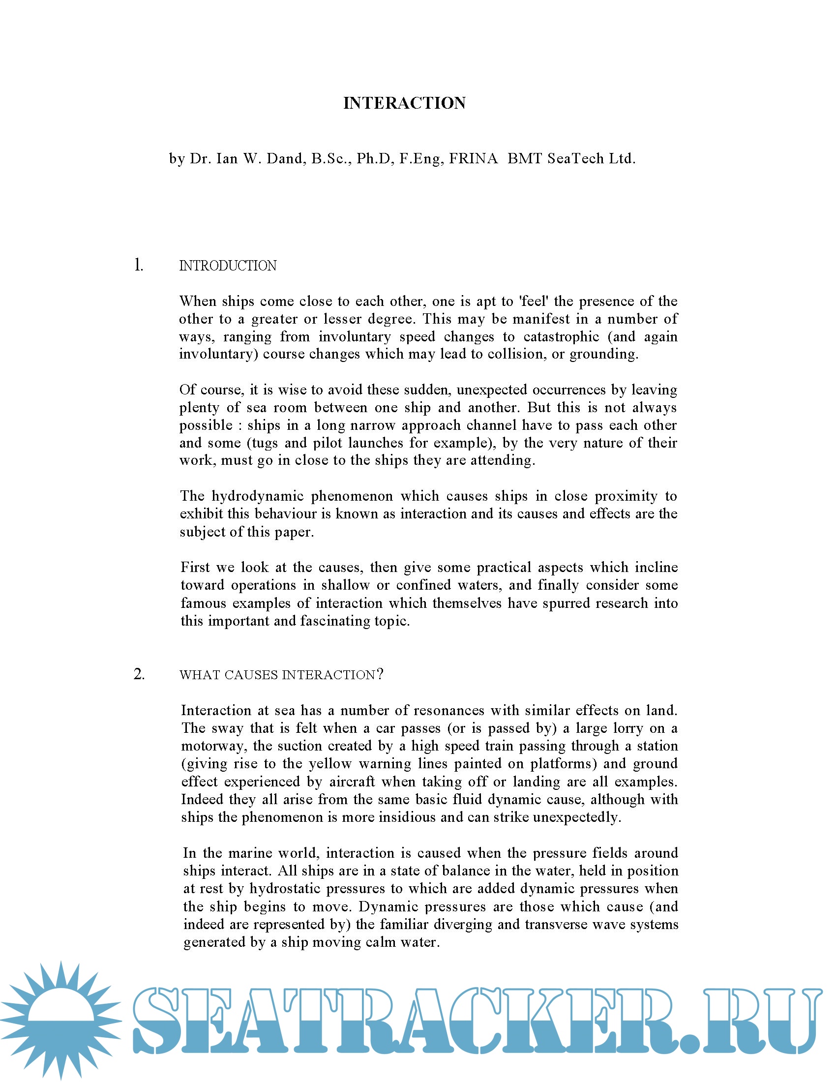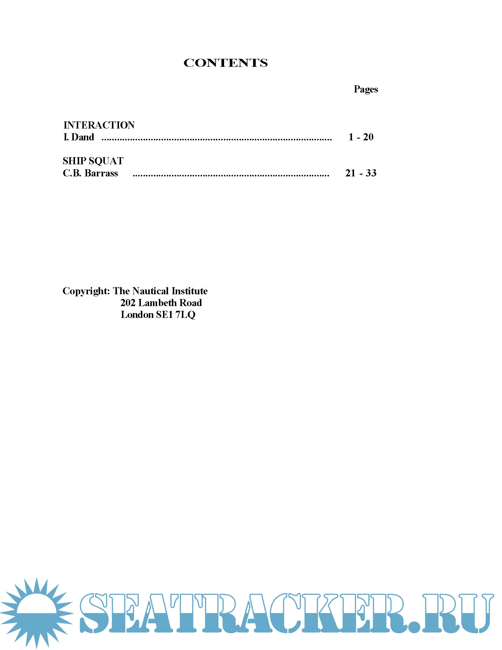 Clean copy and excerpts from the seminar's book regarding Interaction & Ship squat Only.