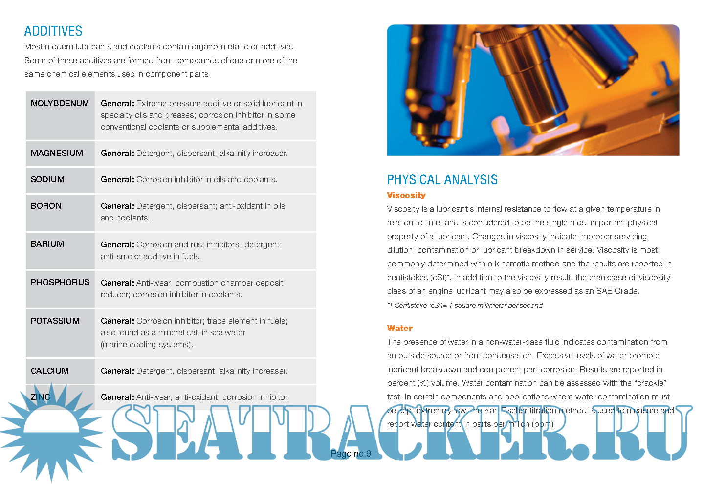 Description: Oil analysis is an integral part of the maintenance plan for marine main engines, Aux machinery, equipment, refrigeration systems, processing and Copt plants, etc.. Any piece of equipment that has a lubricating system is a potential candidate for oil analysis.Oil analysis can Decrease unscheduled downtime,Increase overall component lifespan,Control lube consumption and oil disposal costs Assist product selection, comparison and verification,It Also Identify and measure lube contamination along with component wear for targeted corrective action Reduce in-service failures and field repairs and Establish proper lubricant service intervals,Which in turn Improve reliability, product quality and productivity Improve cost control for equipment, labor and materials.Eliminate needless inspections or repairs and Control spares and replacement costs