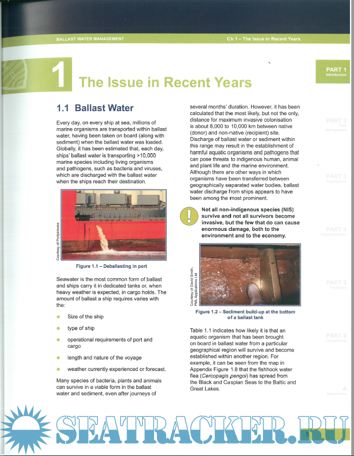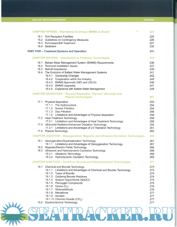 The book discusses the methods and considerations for safe ballast water exchange. It also provides detailed information on the various treatment technologies, including physical separation; thermal, ultraviolet and plasma technologies; and deoxygenation, magnetic and ultrasonic/cavitation technologies.