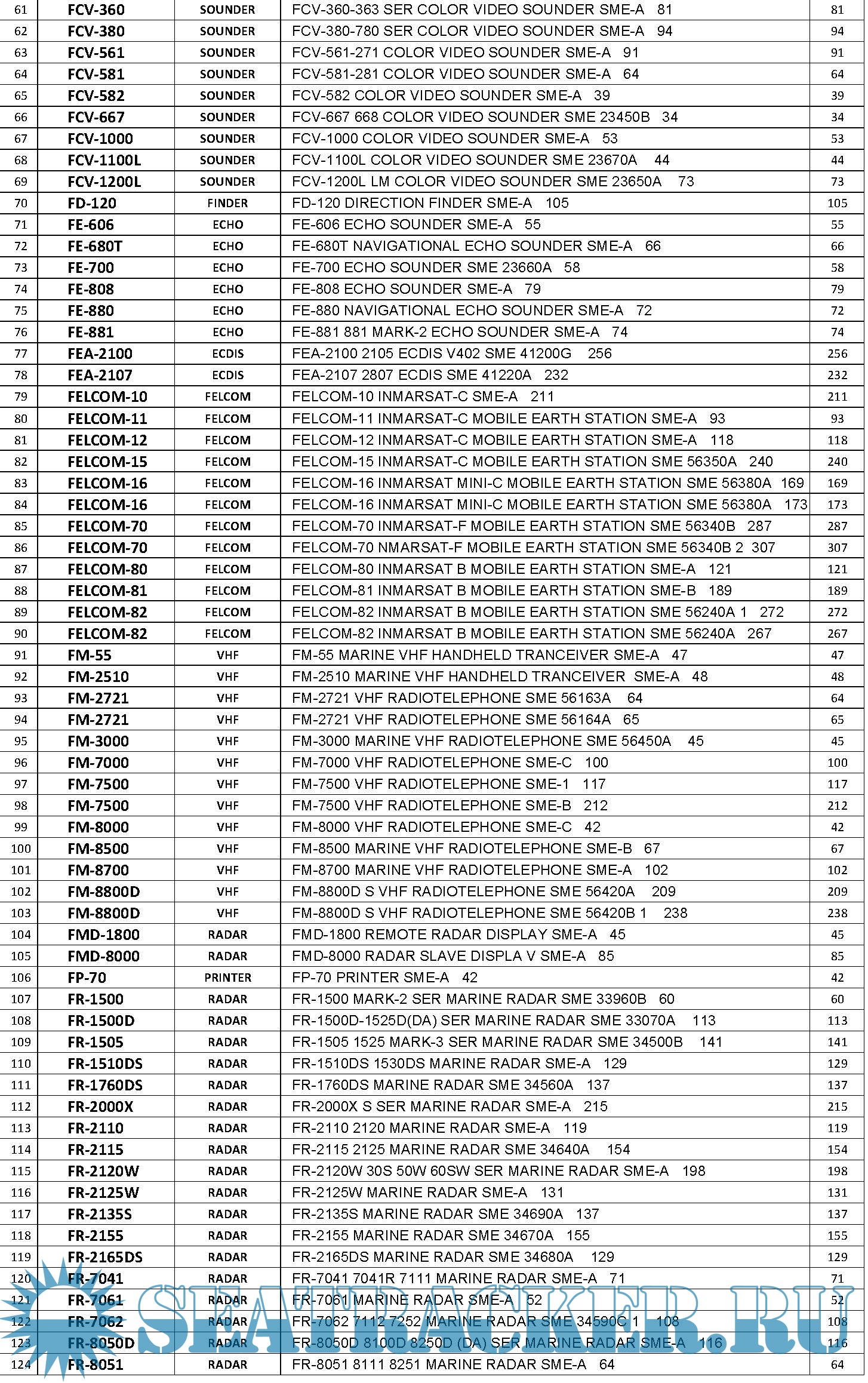 124 FR‐8051 RADAR FR-8051 8111 8251 MARINE RADAR SME-A 64 64