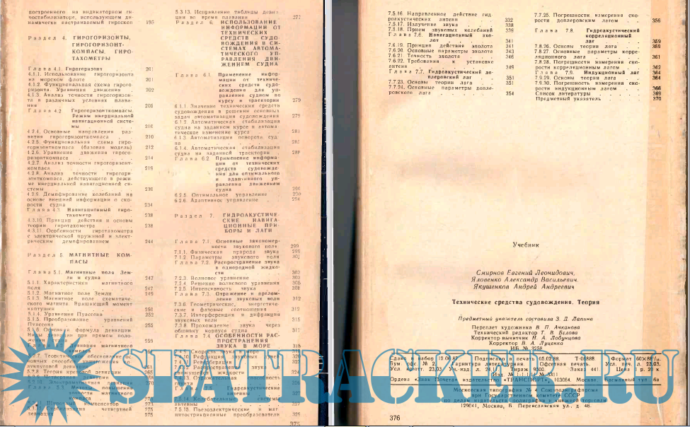 Описание: Смирнов Е. Л., Яловенко А. В., Яку щенков А. А. Технические средства судовождения: Теория: Учебник для вузов / Под ред Е. Л. Смирнова. — М.: Транспорт, 1988. — 376 с.