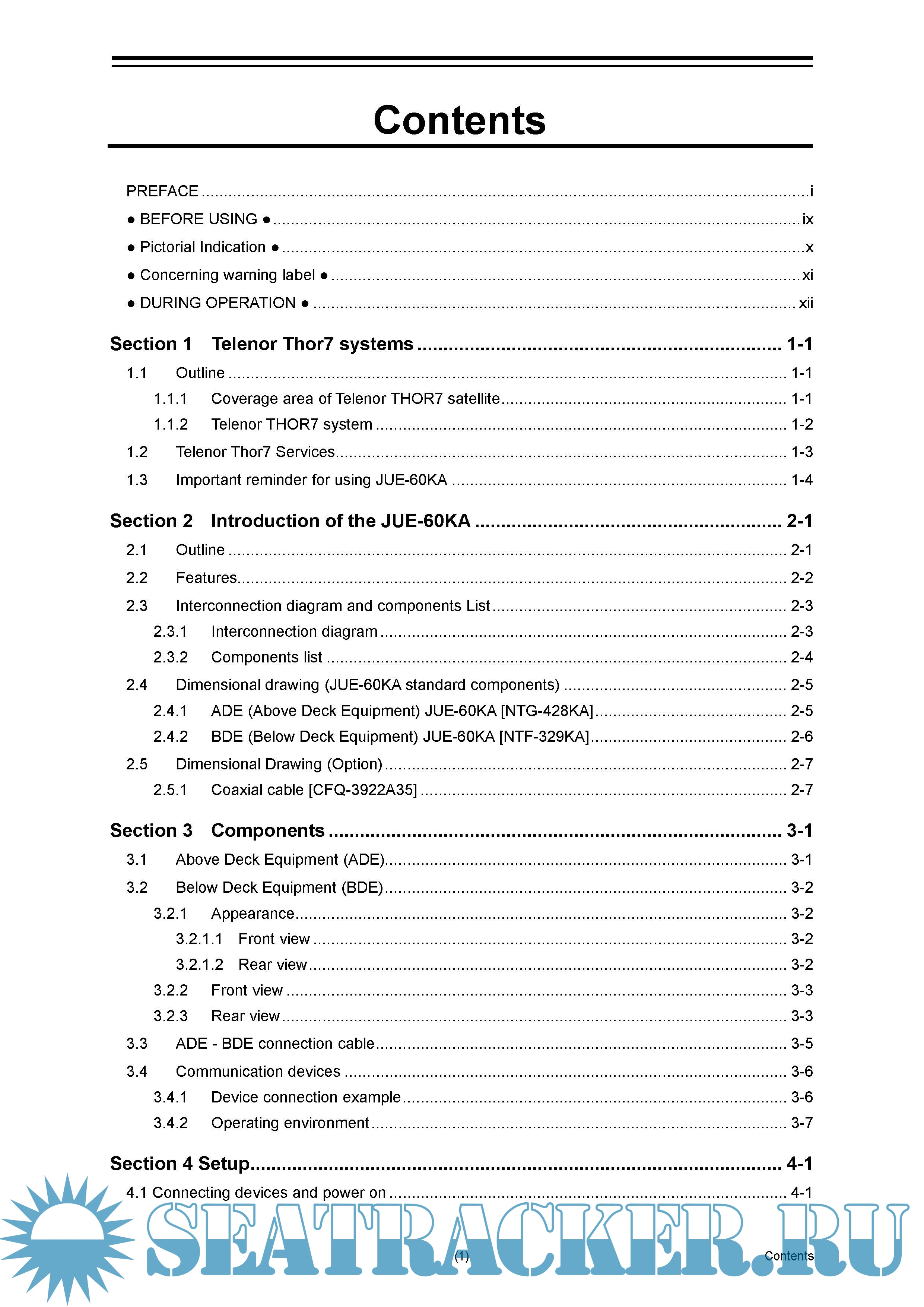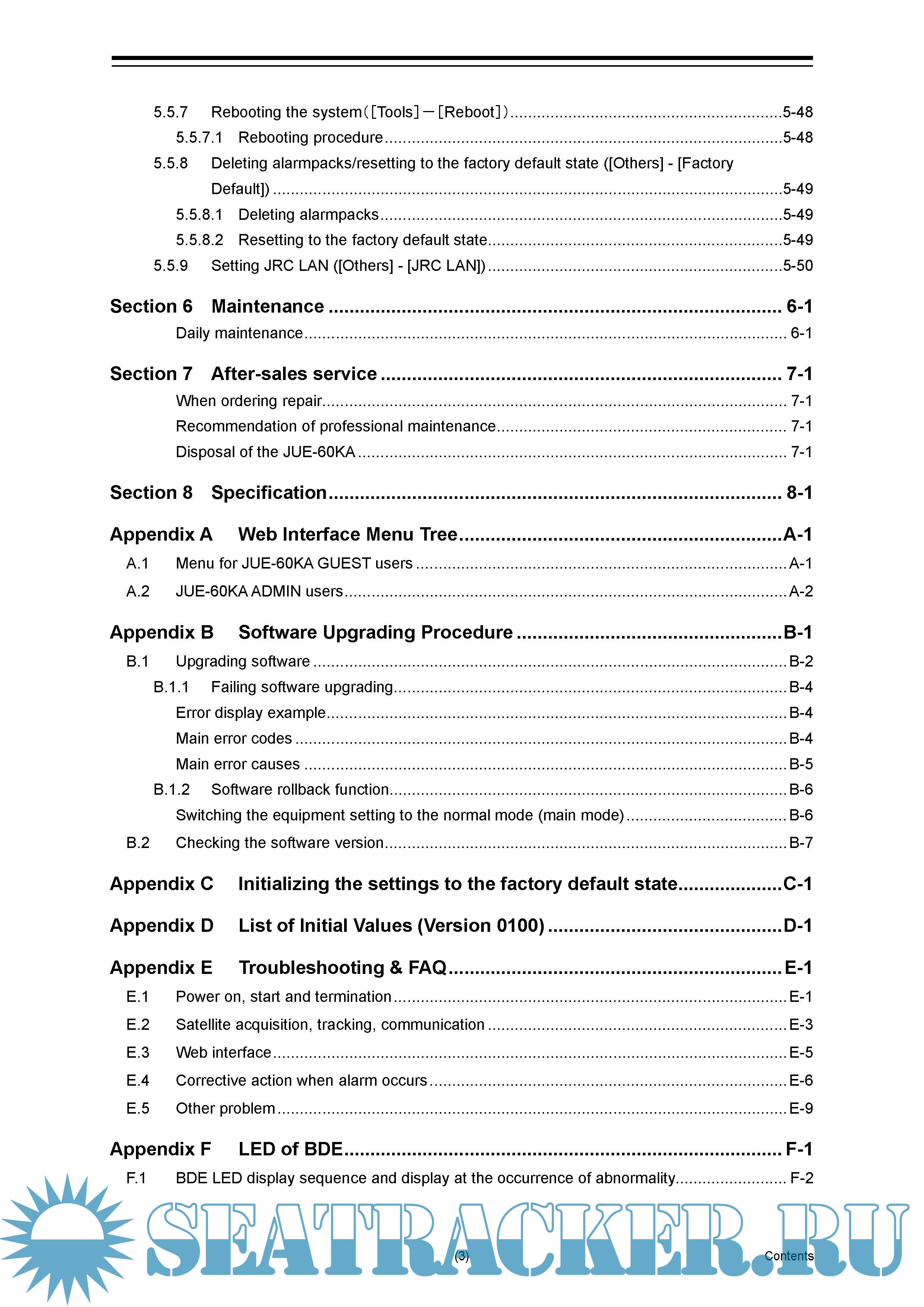 Year: 2020 Language: english Author: JRC Genre: Manual Publisher: JRC Format: PDF Quality: eBook Pages count: 142 Description: The JUE-60KA is Telenor satellite communication terminal with high-speed communication. The JUE-60KA is packaged and shipped under strict quality control with inspection criteria to deliver the equipment with highest quality, performance, and reliability needed to meet our customer’s requirements and satisfaction. JRC believes that you will use this equipment satisfactorily for a long time. • Please read this manual carefully and carry out proper operation. This Manual describes a function and specification based on BDE-Version 0100. • Please do not lose this useful manual, as you will have to refer to it from time to time. • Network service is managed by Inmarsat co. or other network service providers. Network service may be changed or terminated without prior notice due to the circumstances of the network service providers.