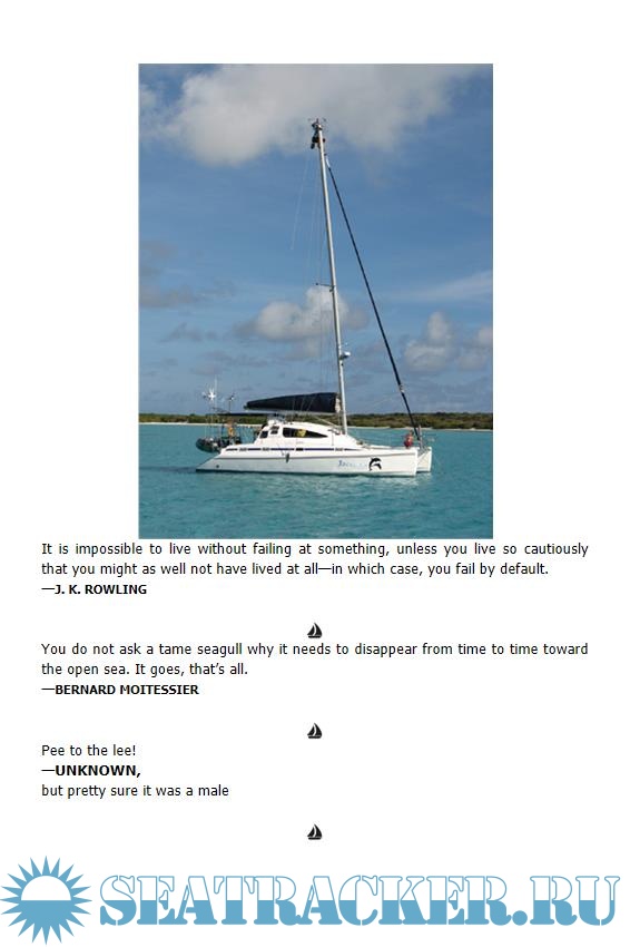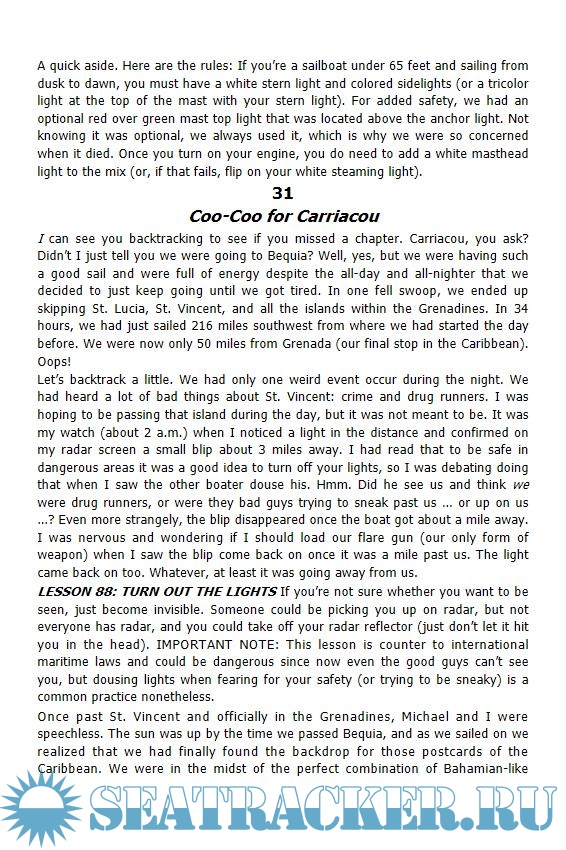 Year: 2012 Language: english Author: Petrillo R.D. Genre: History Publisher: nternational Marine/Ragged Mountain Press Edition: 1st ISBN: 9780071779845 Format: EPUB Quality: eBook Pages count: 298 Description: “It was the best of dreams, it was the worst of dreams, it was an age of consulting the nautical experts, it was the age of landlubber foolishness, it was the epoch of determination, it was the epoch of despair, it was the season of hurricanes, it was a spring of beachcombing…” If you dream about chucking it all away and sailing toward an island life, read this first Renee and Michael didn’t have any boating experience and when their plans to remedy that fell through the two had to learn everything the hard way. Despite themselves they managed to get from Miami to Grenada, eventually dropping the anchor of their cruising catamaran at the island of their dreams. Determined to save future sailors from themselves, A Sail of Two Idiots includes lessons Renee and Michael learned and shares them with you as examples of what and what not to do. This a how-to guide wrapped in a funny story―kind of like getting your serving of vegetables from a slice of pizza. Read this and make your dream of sailing away a reality. Includes: “What Broke?” sections explores the ongoing maintenance and upkeep of a cruising multihull "Island” section provide assessments of the islands of the Caribbean