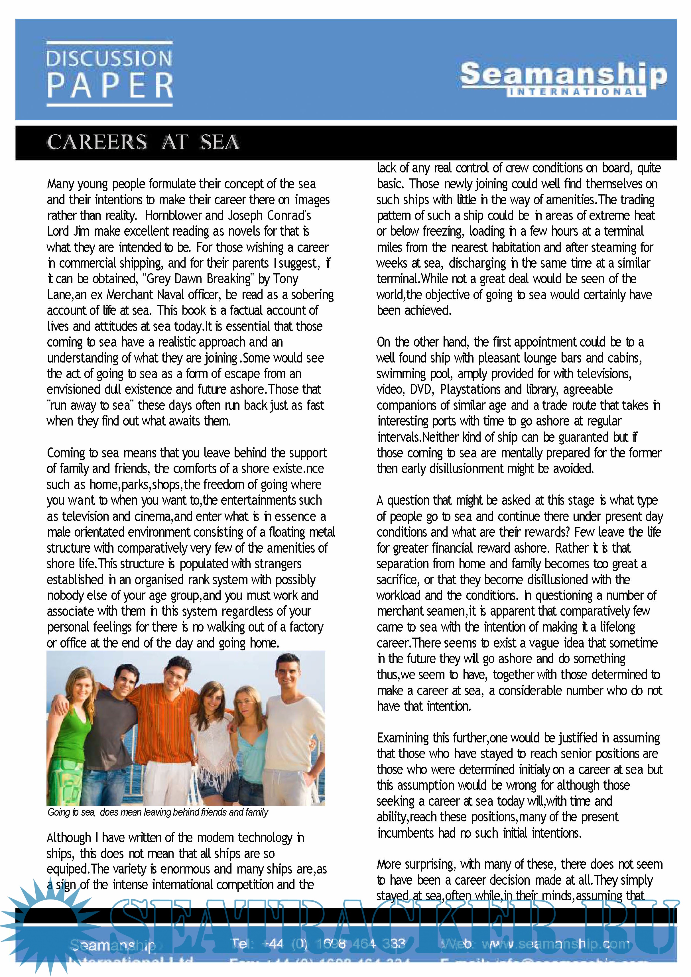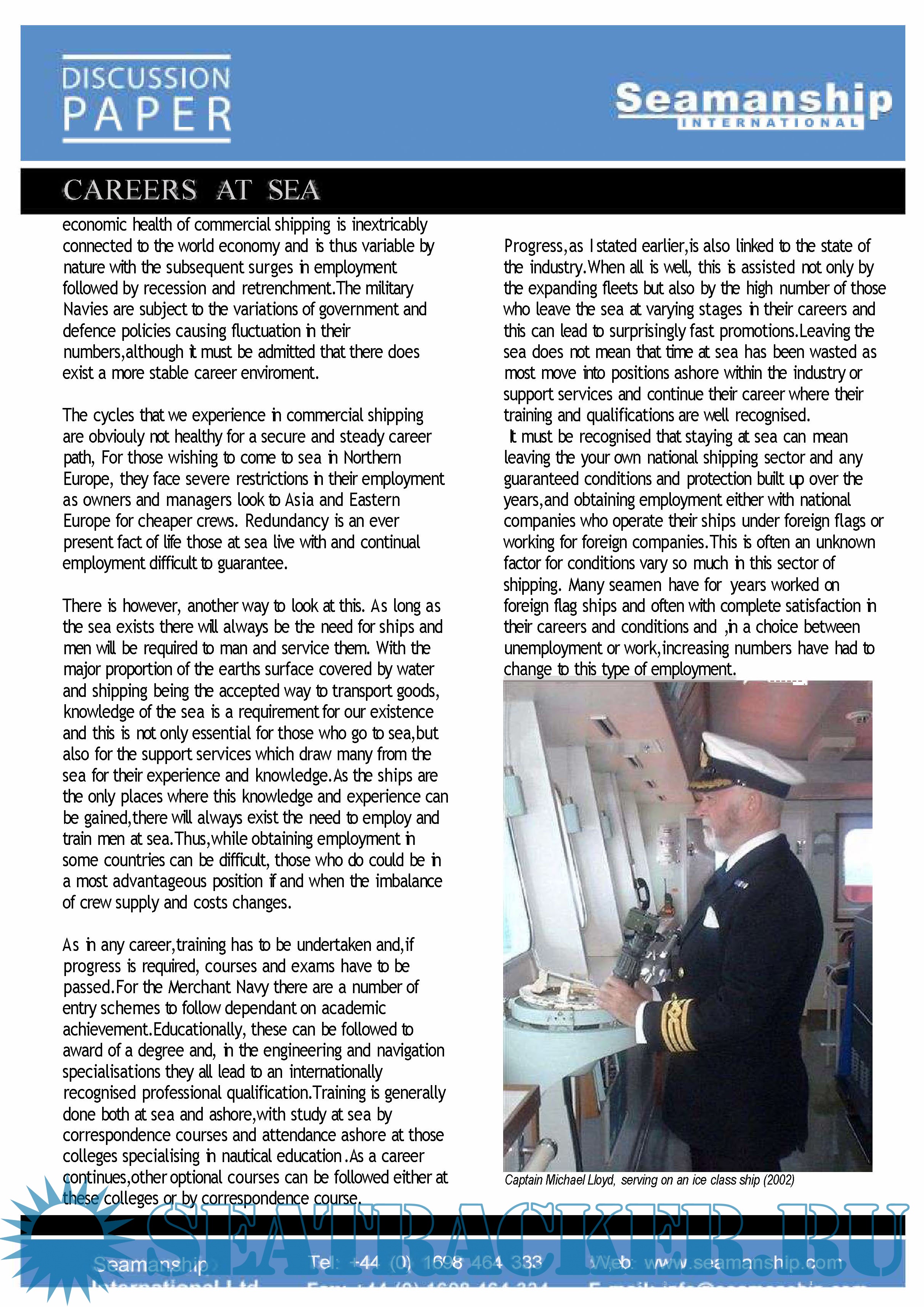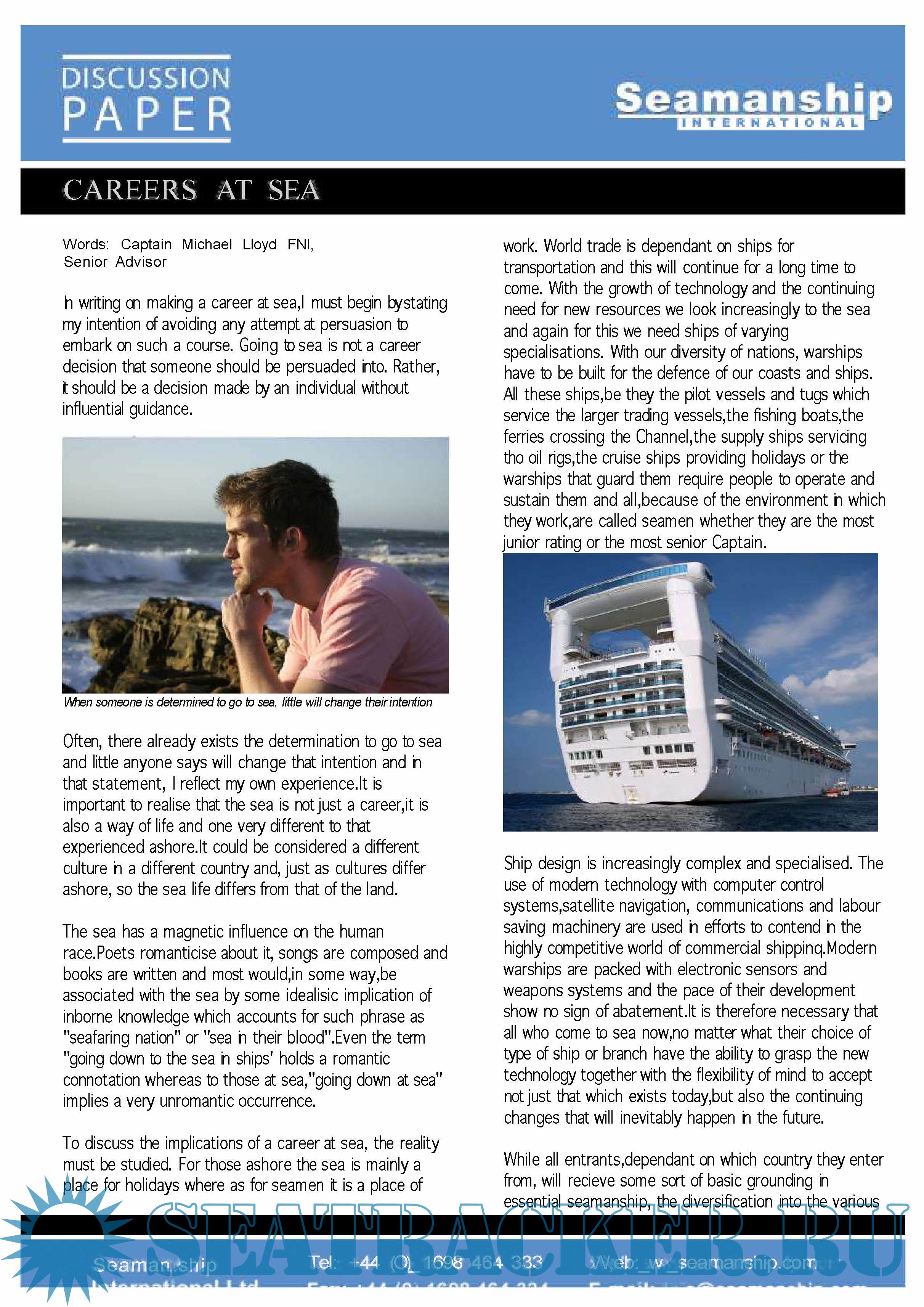 Description: Captain Michael Lloyd writes on those who wish to consider making a career at sea. Discussion Paper