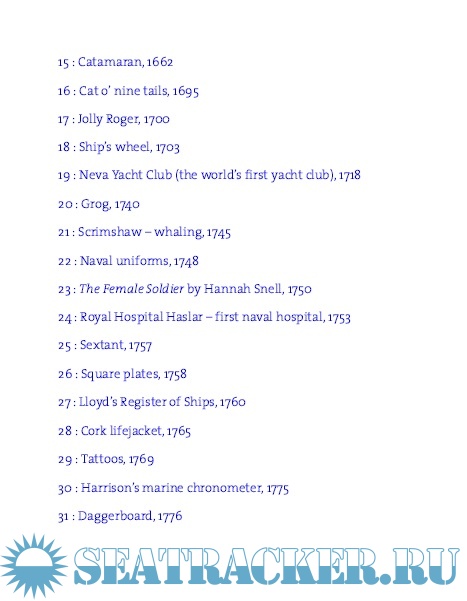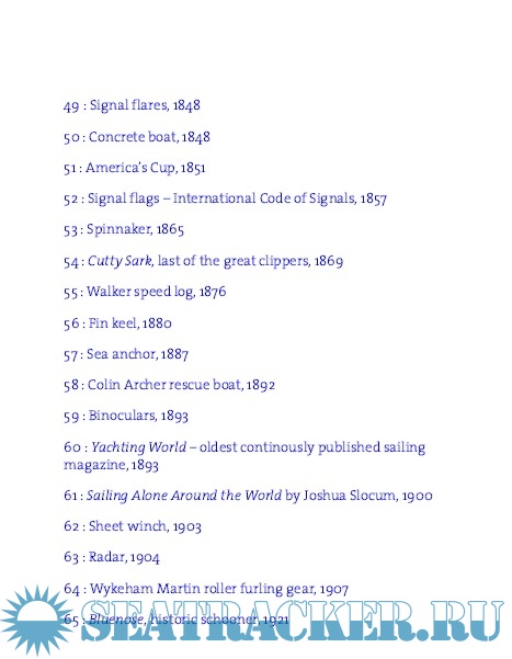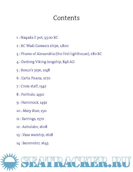 Description: The book provides a fascinating insight into the history of sailing explored through a hundred objects that have been pivotal in the development of sailing and saling boats. From the earliest water-borne craft, through magnificent Viking warships, to the technology that powers some of the most sophisticated modern yachts, the book also covers key developments such as keeps, and navigational aids, including the astrolabe, sextant, and compass. Other more apparently esoteric objects from all around the world are also explored, including the importance of citrus fruit in the prevention of scurvy, scrimshaw made from whalebone, and the meaning of sailor's tattoos.