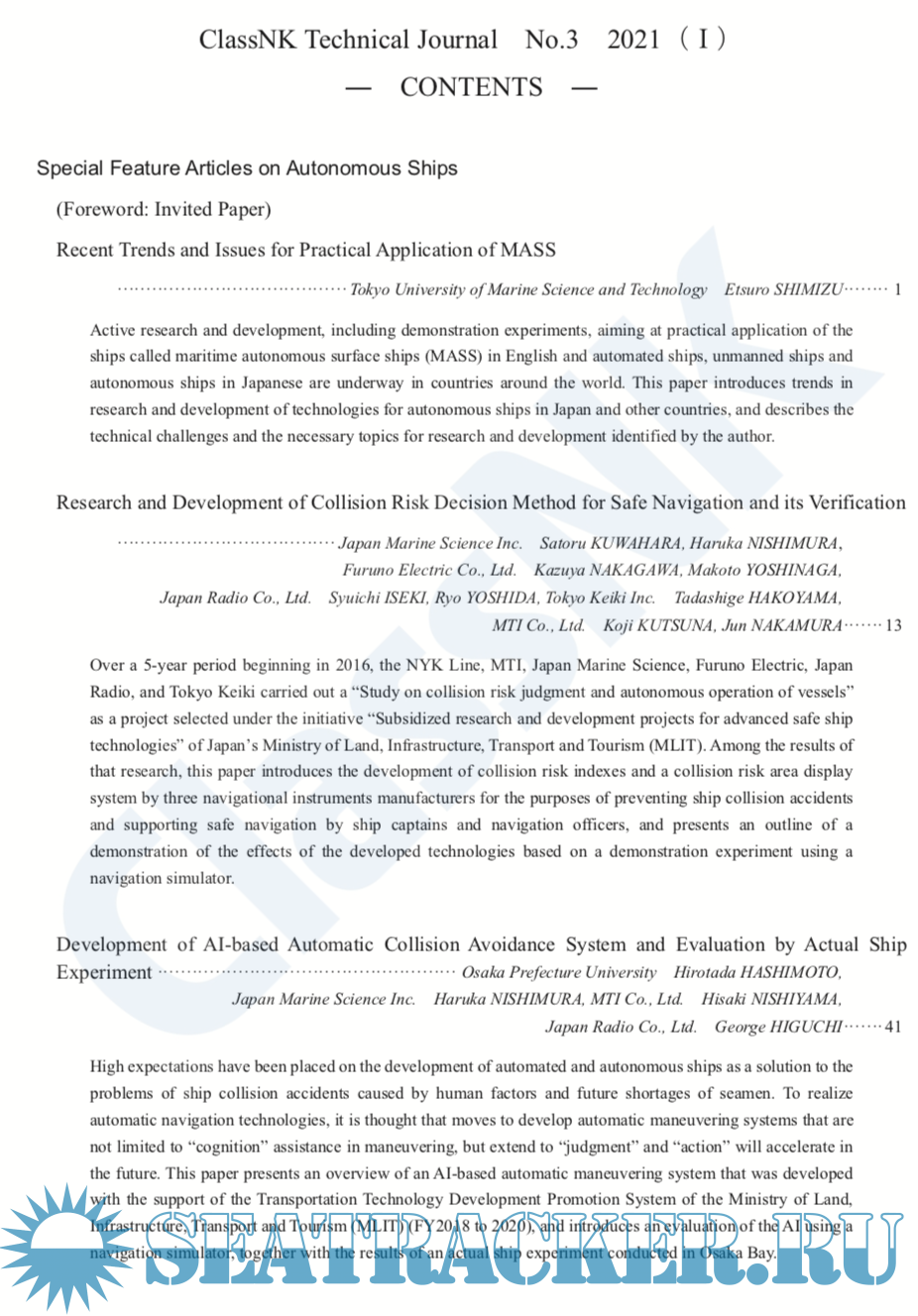 Class NK Technical Journal 2021 (Special Feature Articles on Autonomous Ships)