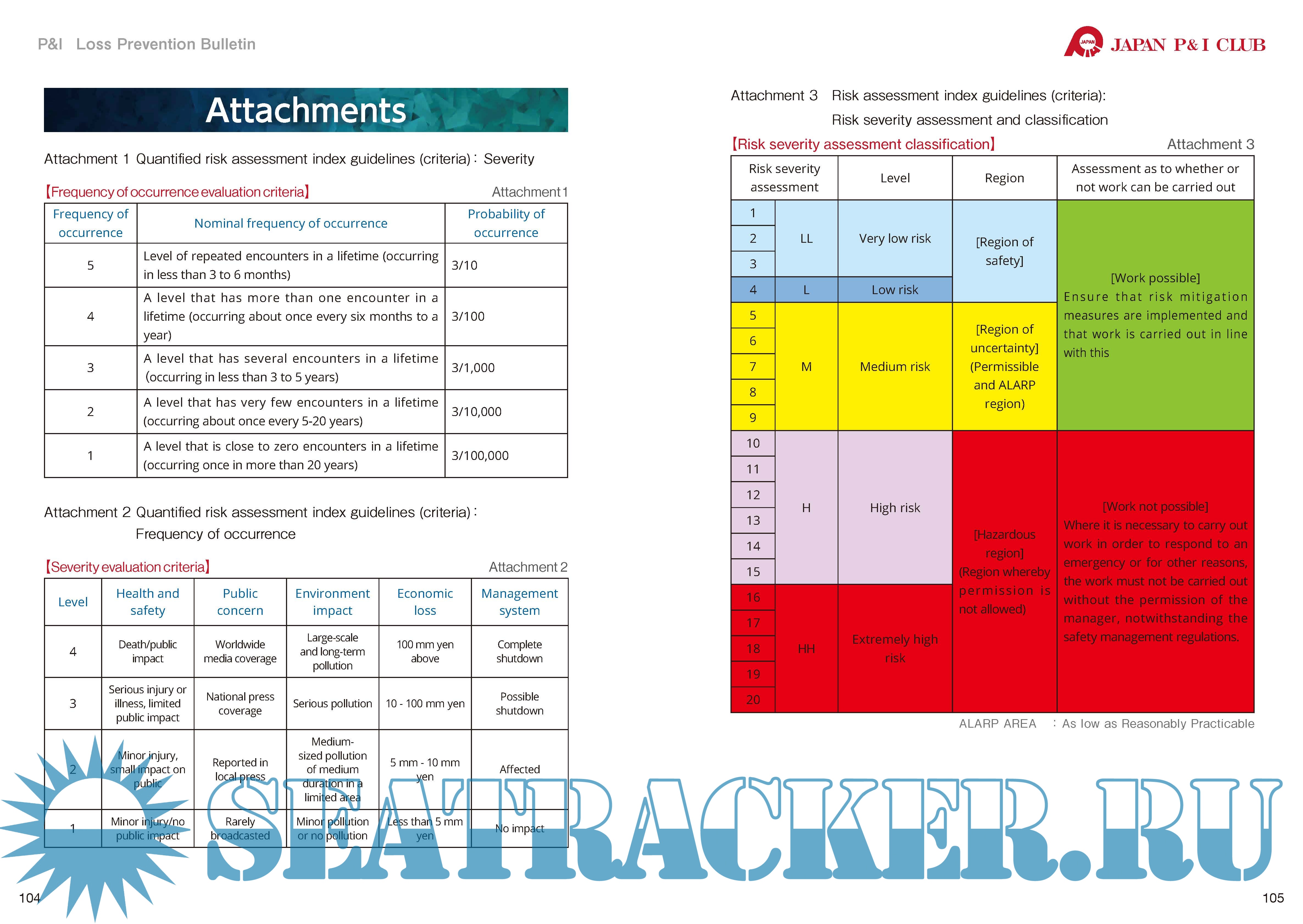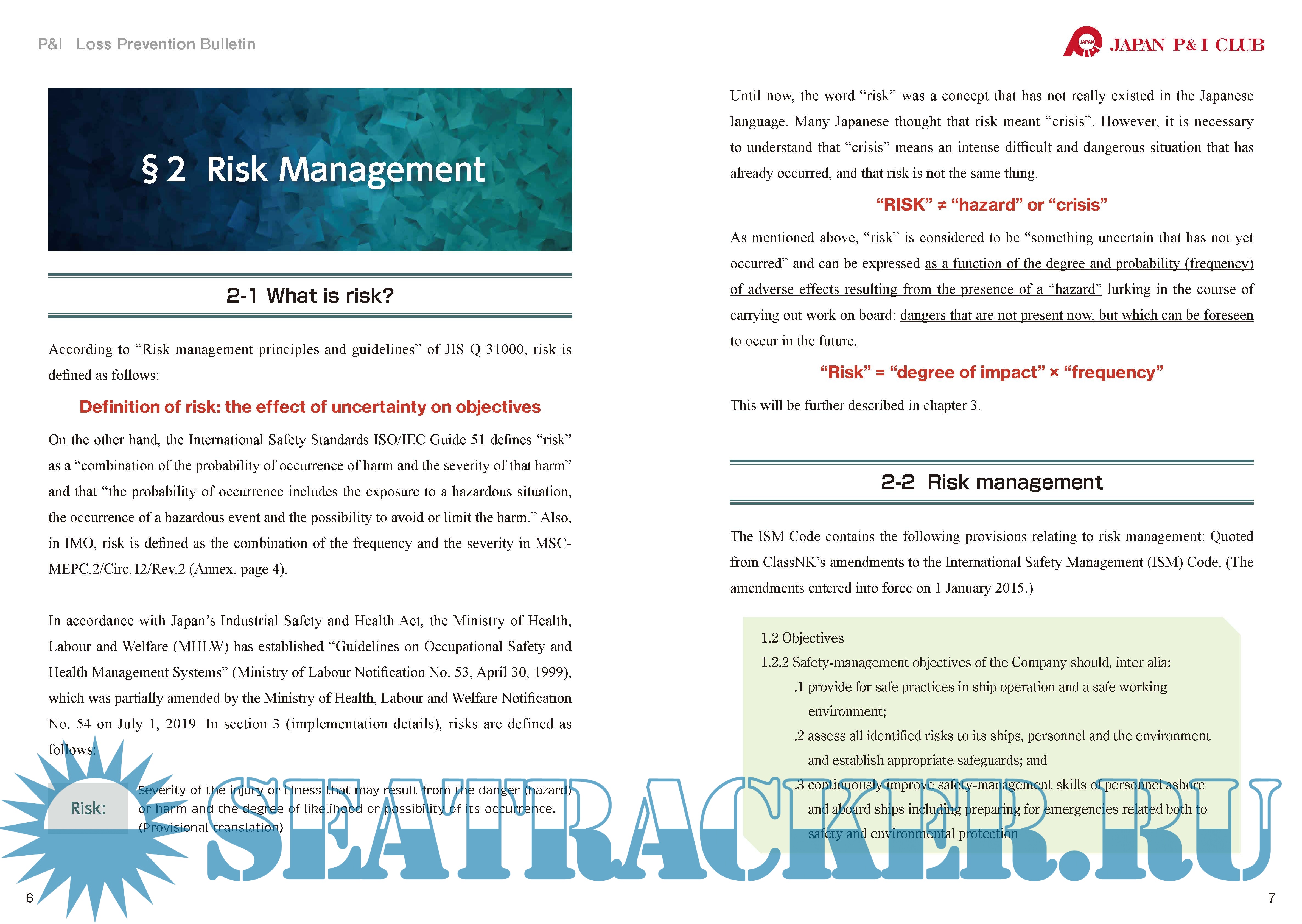 Year: 2021 Language: english Author: Japan P&I Club Format: PDF Quality: eBook Pages count: 128 Description: This Bulletin "Risk Assessment in Practice" refers to the reason why risk assessment is not effectively utilized on a vessel and/or by ship management companies. Issued June 2021 Vol. 51