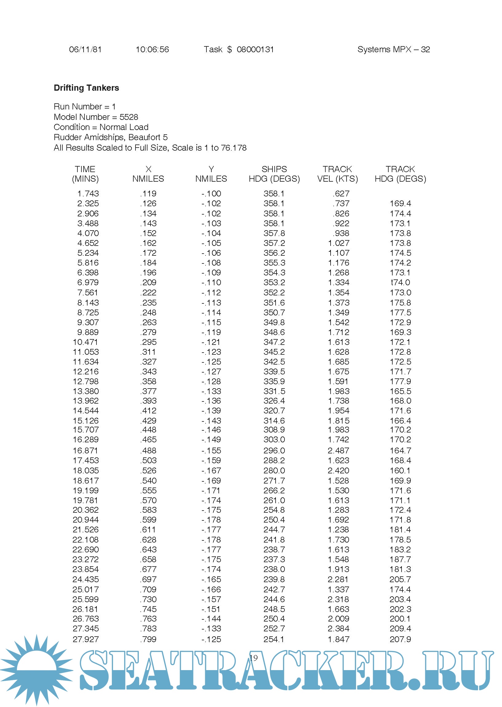 This publication is based on the results of a study carried out by the National Maritime Institution (NMI), in conjunction with OCIMF, to investigate the drift characteristics of tankers from 50,000 to 70,000 dwt. It contains: