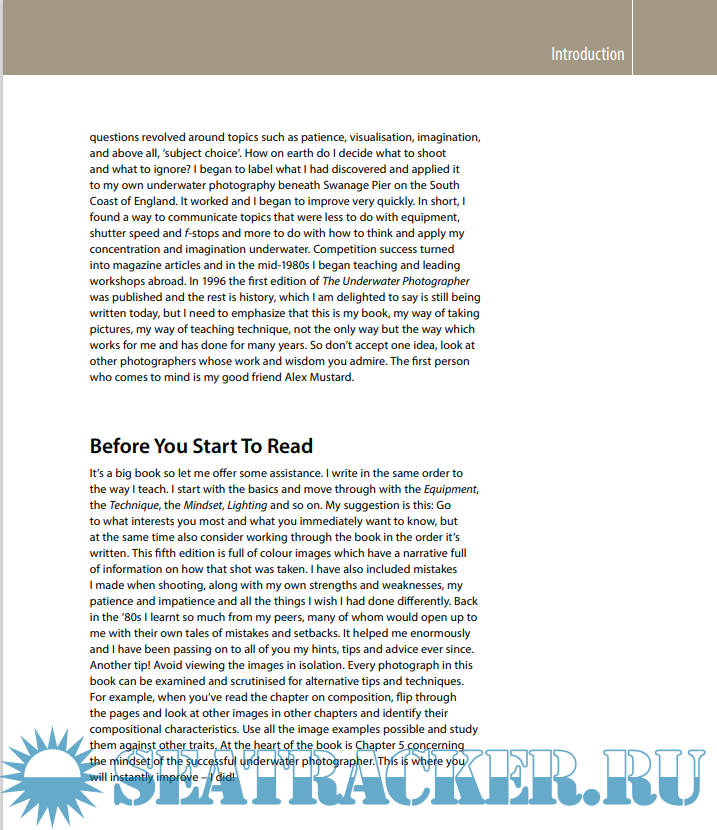 The book features over 400 updated colour images - taken on numerous dives around the world - with an accompanying narrative that provides detailed information on how the shots were taken, their strengths and weaknesses and how to fix mistakes. Practical examples take you step-by-step through the basic techniques: photographing shipwrecks, divers, marine life, macro images and taking photographs at night. New chapters cover the latest equipment, processes and techniques including SLR Cameras, water contact lenses, mirrorless interchangeable lens cameras, micro four third systems, super macro techniques, motion blur, LED lighting and more.