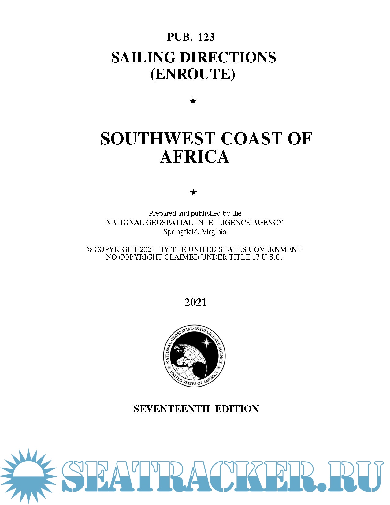 Description: Pub. 123, Sailing Directions (Enroute) Southwest Coast of Africa, Seventeenth Edition, 2021, is issued for use in conjunction with Pub. 160, Sailing Directions (Planning Guide) South Atlantic Ocean and Indian Ocean. The companion volume is Pub. 124.