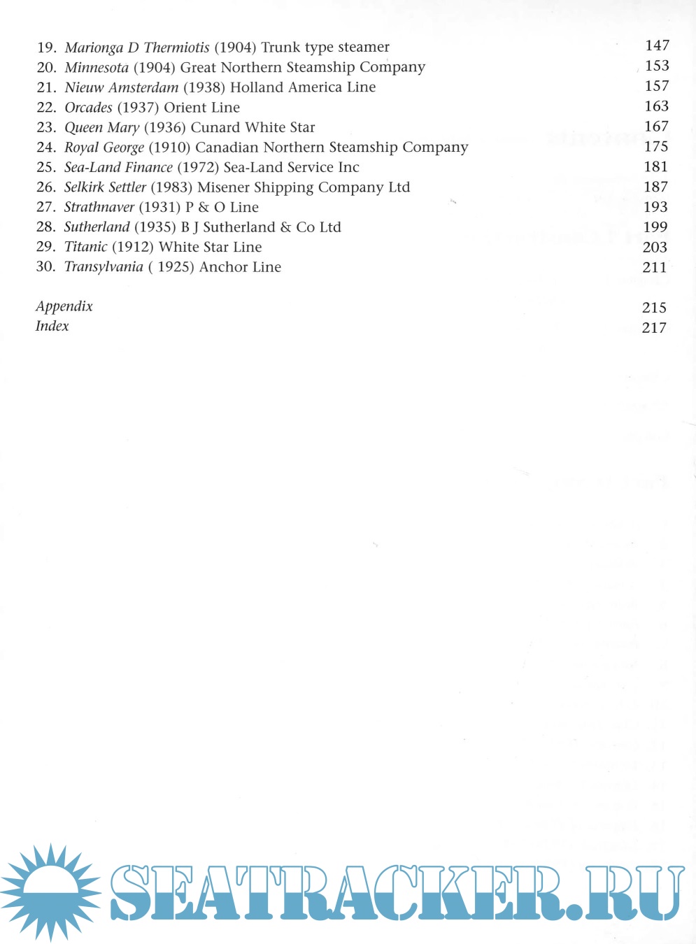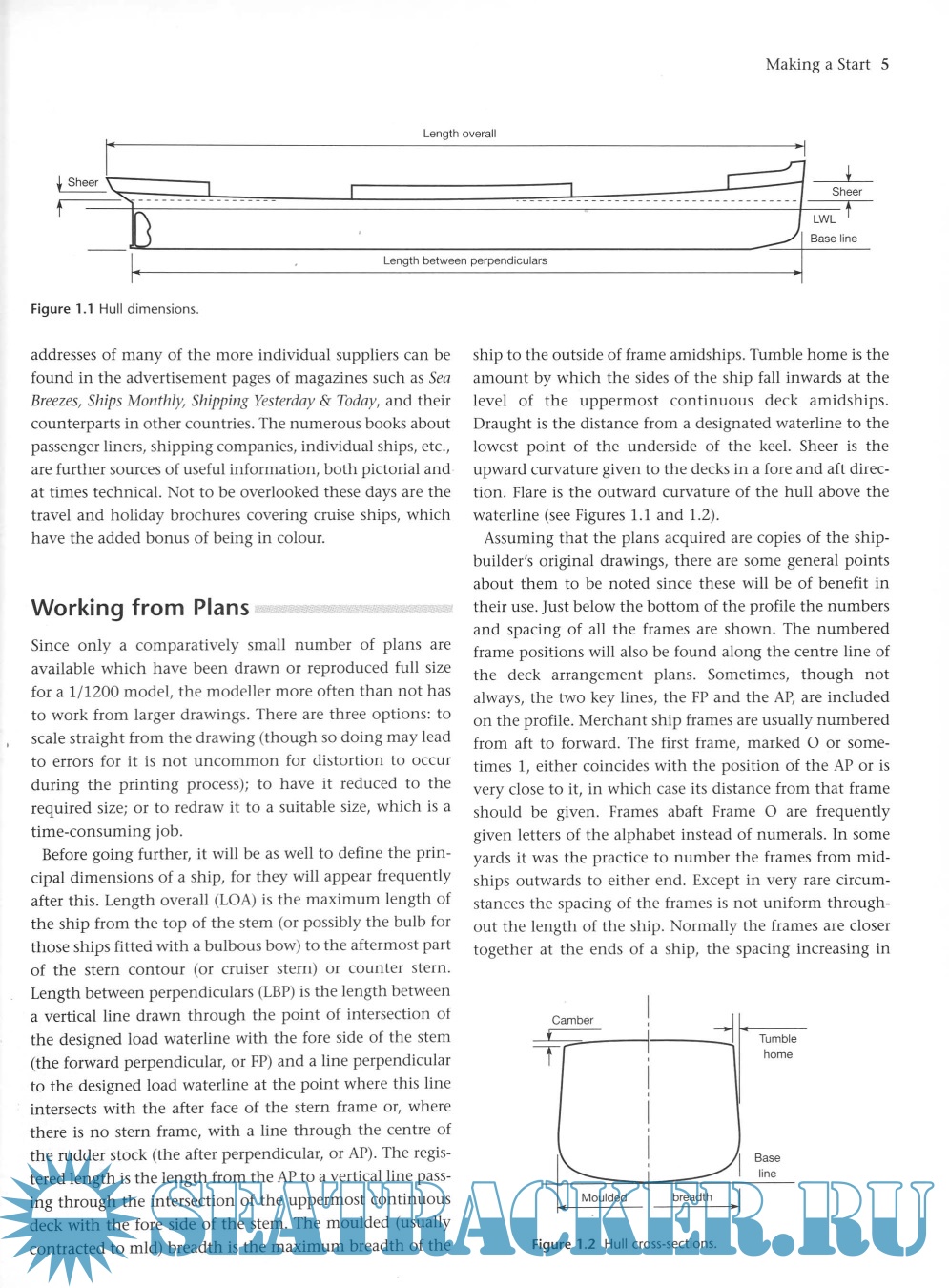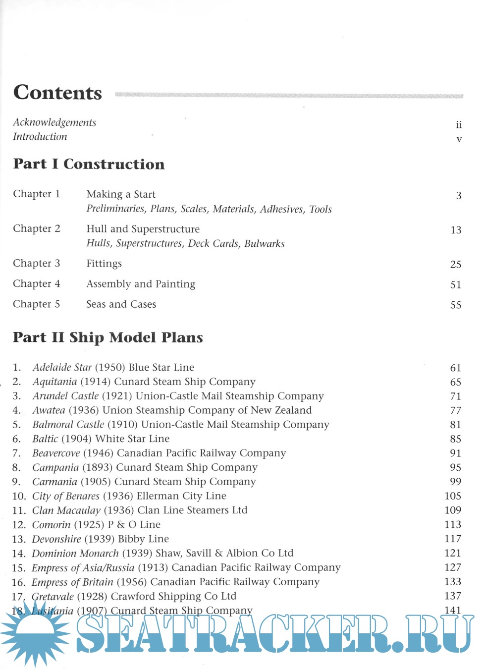 The second part contains 30 sets of plans reproduced full size for 1:1200 models, each accompanied by one or more photographs of the ship, a brief life history, notes on aspects of building the model, and details of the colour scheme. The ships range from the Cunard line "Campania" (1893) to the Great Lakes bulk carrier "Selkirk Settler" (1893), "Aquitania", "Titanic", the troopship "Devonshire" (1939), "Arundel Castle" (1921), "Minnesota" (1904), of the Great Northern Steamship Company (USA), "Nieuw Amsterdam" (1938), "Royal George" (1910), "Orcades" (1937) and several types of cargo ship. John Bowen is the author of "Waterline Ship Models" and "A Ship Modelmaker's Manual", and editor of "Scale Model Sailing Ships" and "Scale Model Warships".