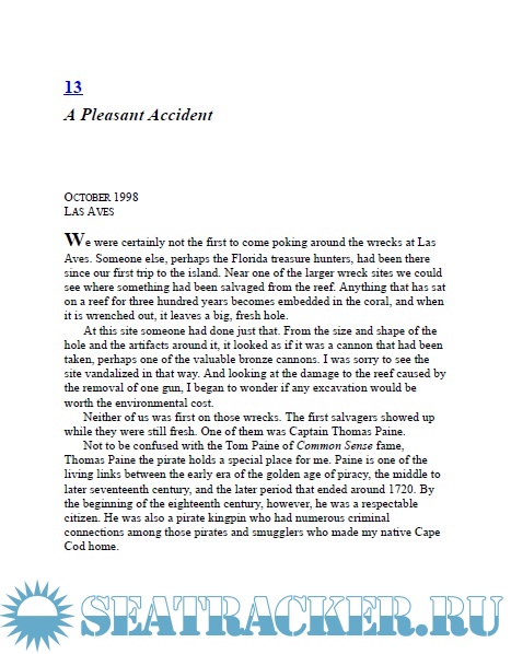 Year: 2003 Language: english Author: Barry Clifford Genre: History Publisher: harper collins e-books Edition: 1st ed. ISBN: 0060957794 Format: PDF Quality: eBook Pages count: 304 Description: On January 2, 1678, a fleet of French ships sank off the Venezuelan coast. This proved disastrous for French naval power in the region, and sparked the rise of a golden age of piracy. Tracing the lives of fabled pirates like the Chevalier de Grammont, Nikolaas Van Hoorn, Thomas Paine, and Jean Comte d'Estrées, The Lost Fleet portrays a dark age, when the outcasts of European society formed a democracy of buccaneers, settling on a string of islands off the African coast. From there, the pirates haunted the world's oceans, wreaking havoc on the settlements along the Spanish mainland and -- often enlisted by French and English governments -- sacking ships, ports, and coastal towns. More than three hundred years later, writer, explorer, and deep-sea diver Barry Clifford follows the pirates' destructive wake back to Venezuela. With the help of a lost map, drawn by the captain of the lost French fleet, Clifford locates the site of the disaster and wreckage of the once-mighty armada