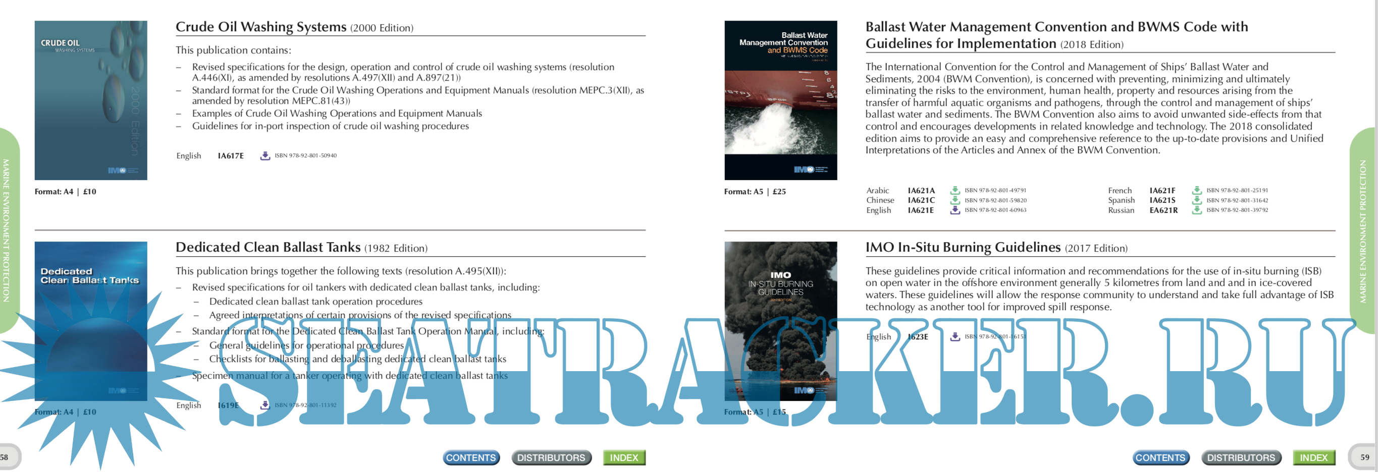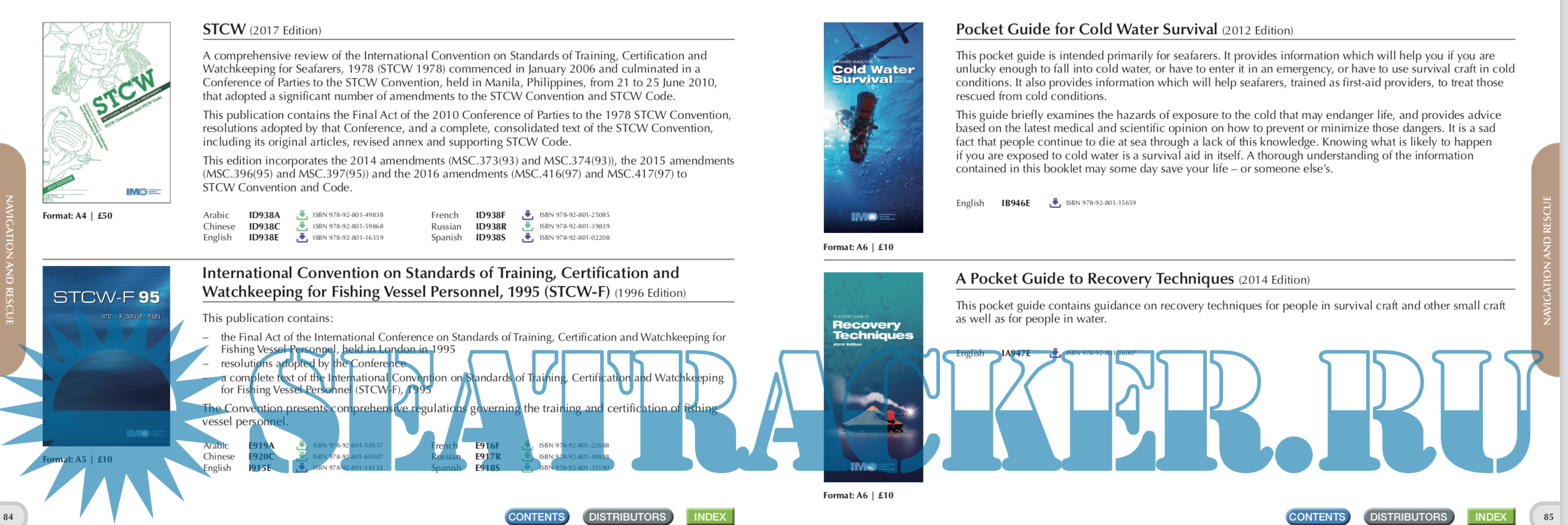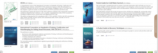 Description: IMO Publishing’s activities provide the world’s maritime community with numerous texts (conventions, codes, regulations, recommendations, guidelines, etc.) prepared by the Organization. There are over 200 titles available in English. Many are translated into Arabic, Chinese, French, Russian and Spanish. IMO Publishing also produces digital products, namely e-books, e-readers, electronic downloads, CDs and internet subscriptions. The dissemination of this information, including attendance at maritime exhibitions worldwide and regular e-newsletters to interested parties, plays an important role in promoting shipping as a safe, secure, efficient and environmentally-friendly method of transporting goods around the globe